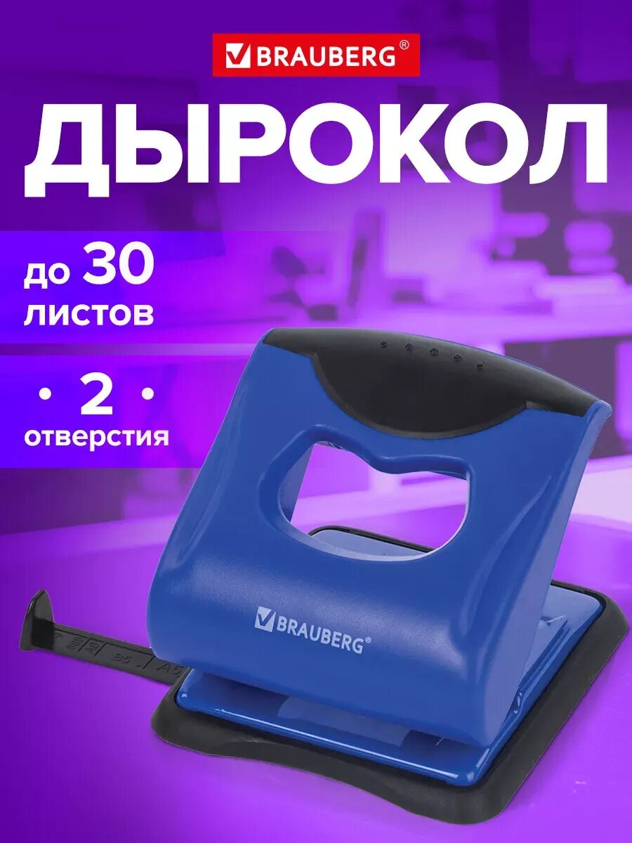 Дырокол Brauberg на 30 листов сине черный 228600