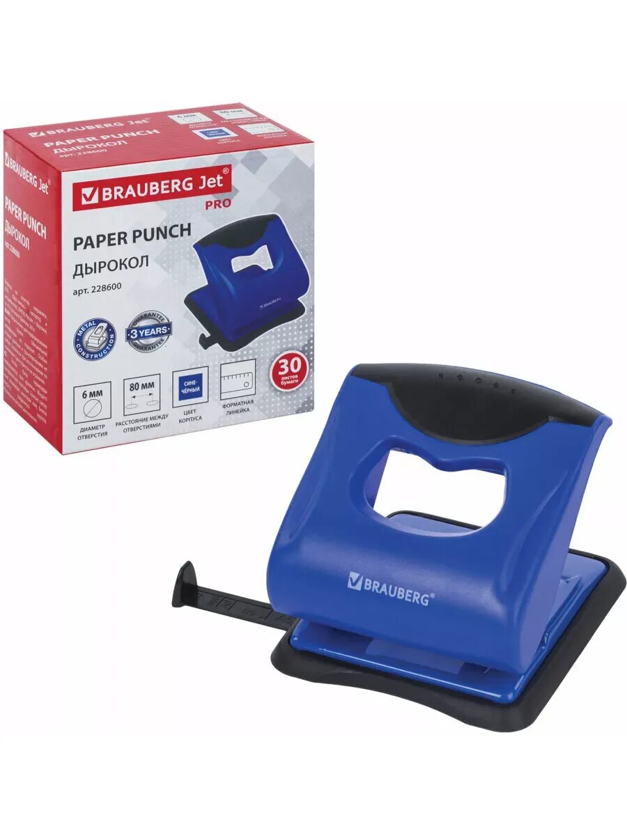 Дырокол BRAUBERG "JET PRO", до 30 листов, сине-черный, 228600