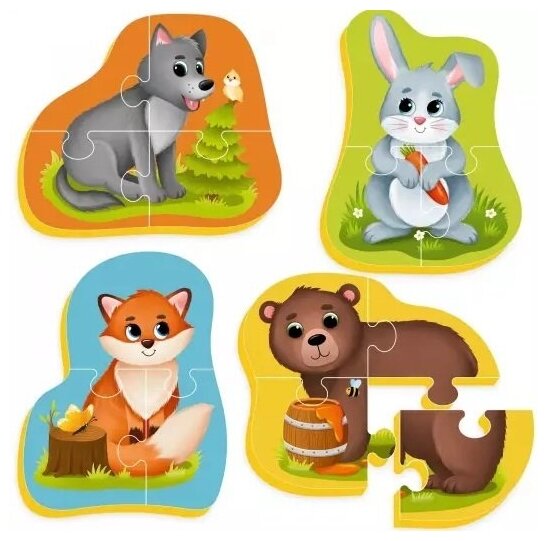 Пазлы для малышей "Лесные жители", 4 картинки, 13 элементов