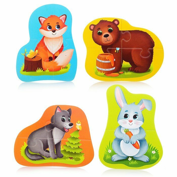 Пазлы для малышей "Лесные жители", 4 картинки, 13 элементов
