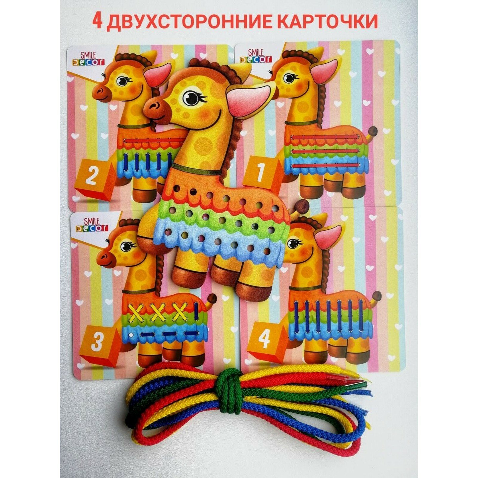 Купить Развивающая игра из дерева Шнуровка с карточками примерами "Жираф"