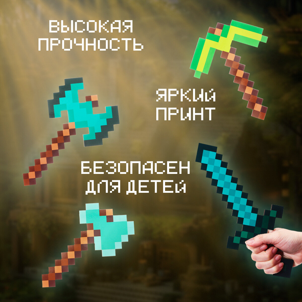 Набор оружия деревянное игрушечное "Minecraft", 4 шт., детское, яркий принт, +3