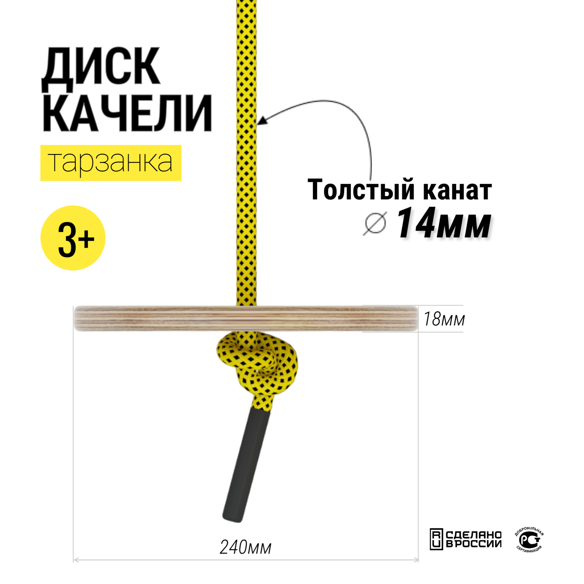Диск качели деревянные на прочном канате для дома, дачи, шведской стенки, тарзанка на канате, детская качель