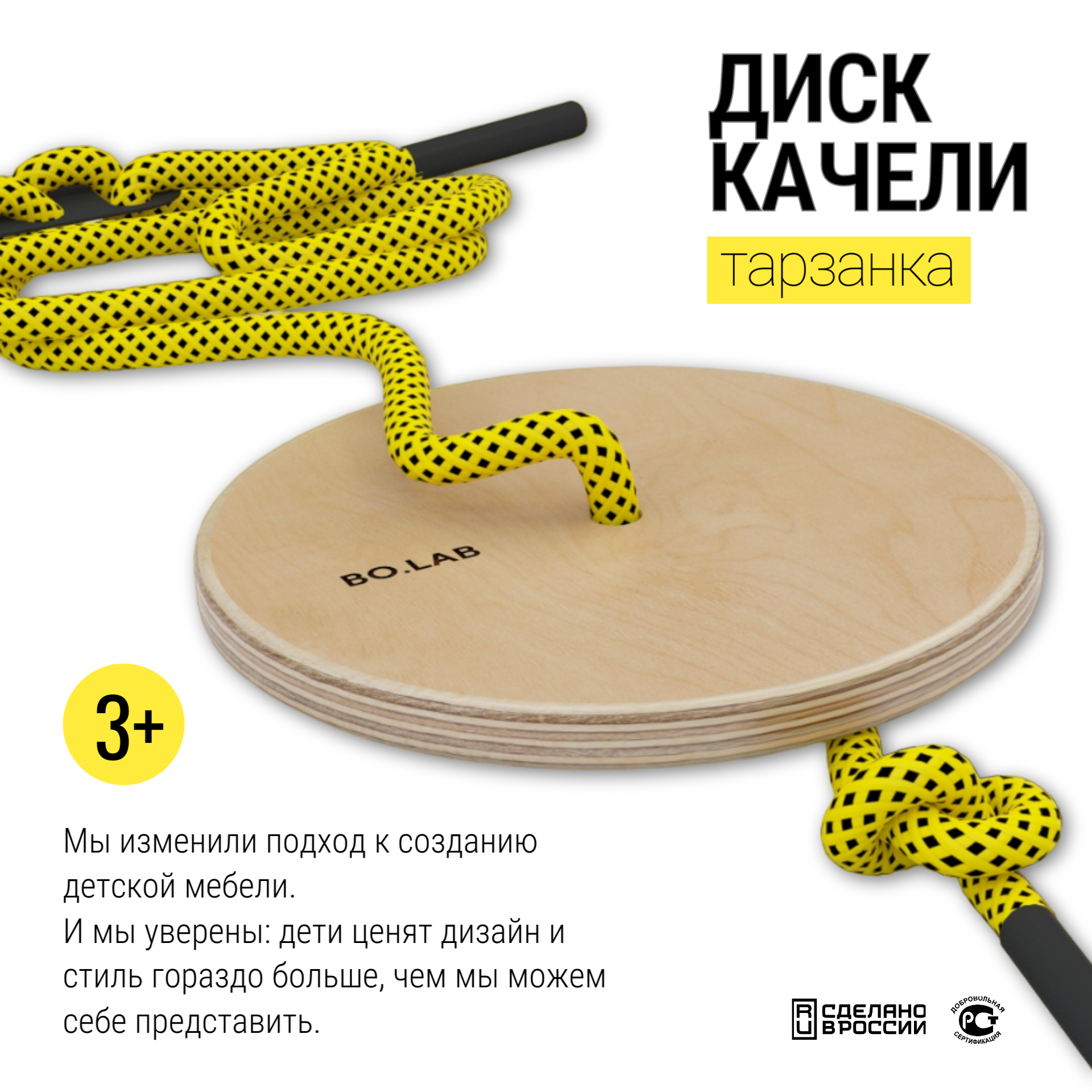 Диск качели деревянные на прочном канате для дома, дачи, шведской стенки, тарзанка на канате, детская качель BO.LAB интересное:
