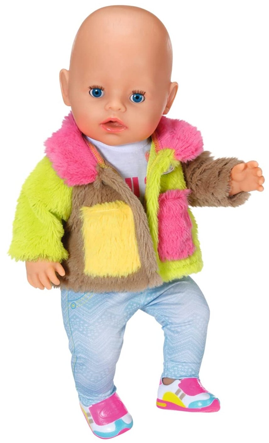 Zapf Creation Baby born Модный наряд с разноцветной меховой курткой, 43 см 830-154