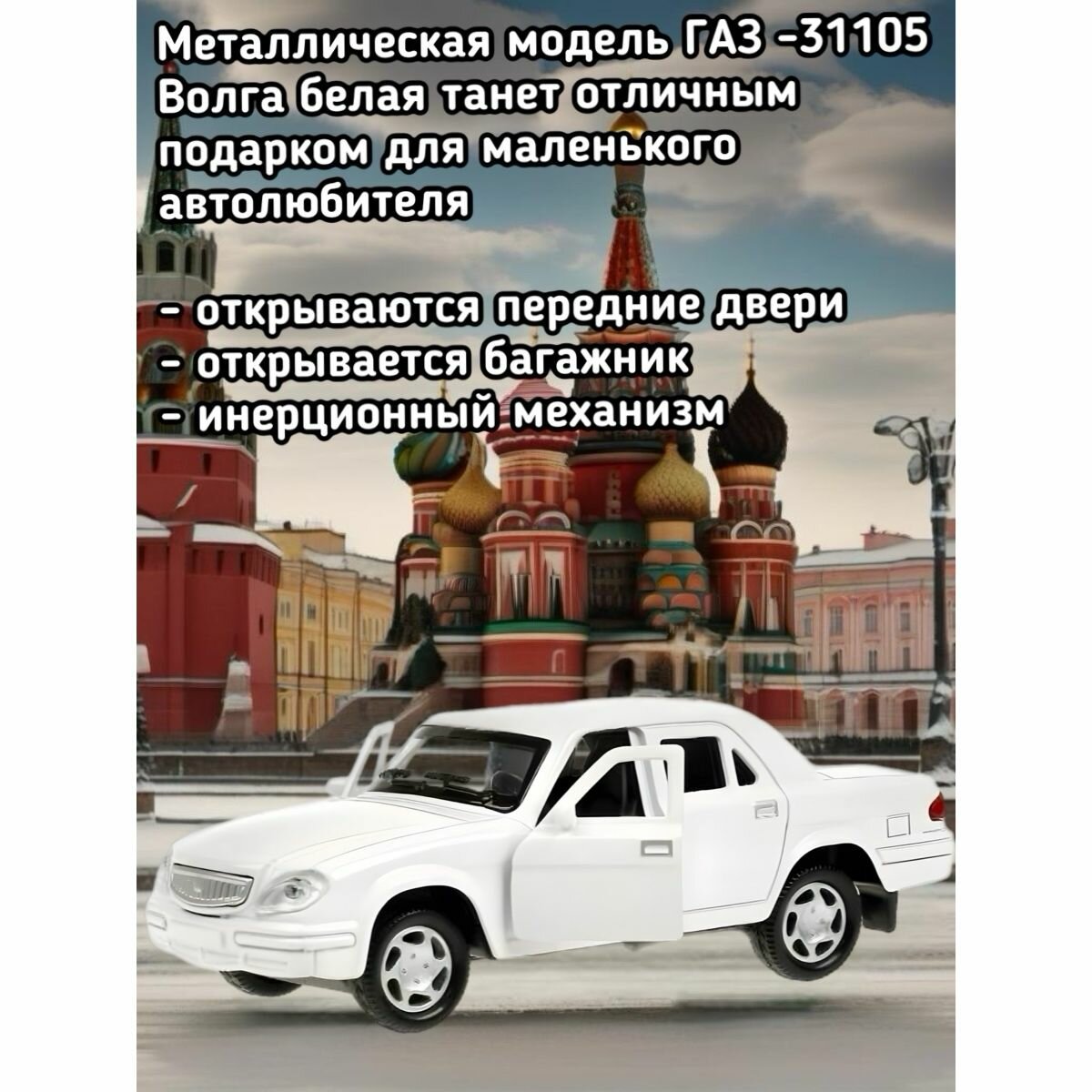 | Дополнительная информация | Машинка игрушка детская для мальчика ГАЗ-2401 Волга милиция Технопарк детская модель металлическая коллекционная инерционная |