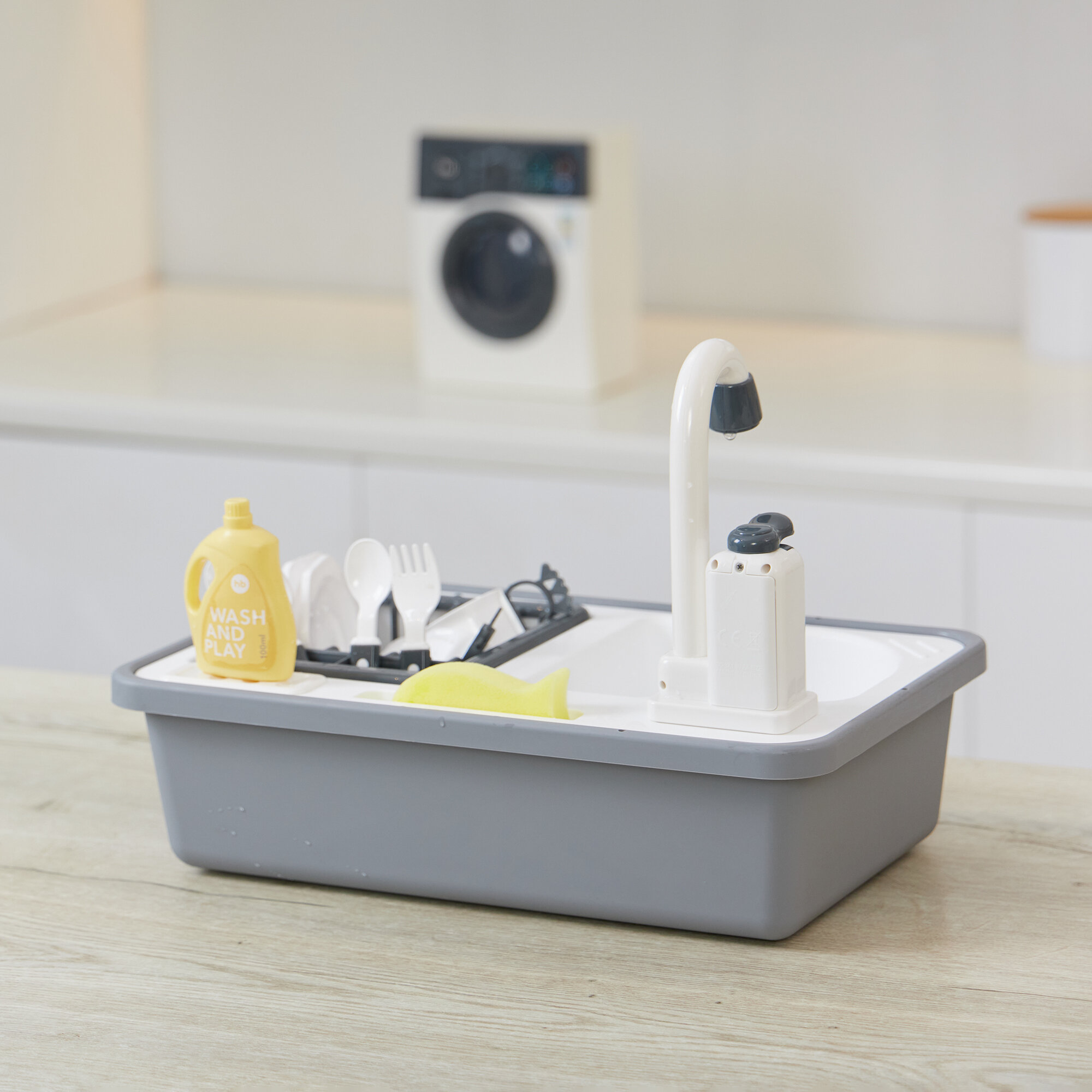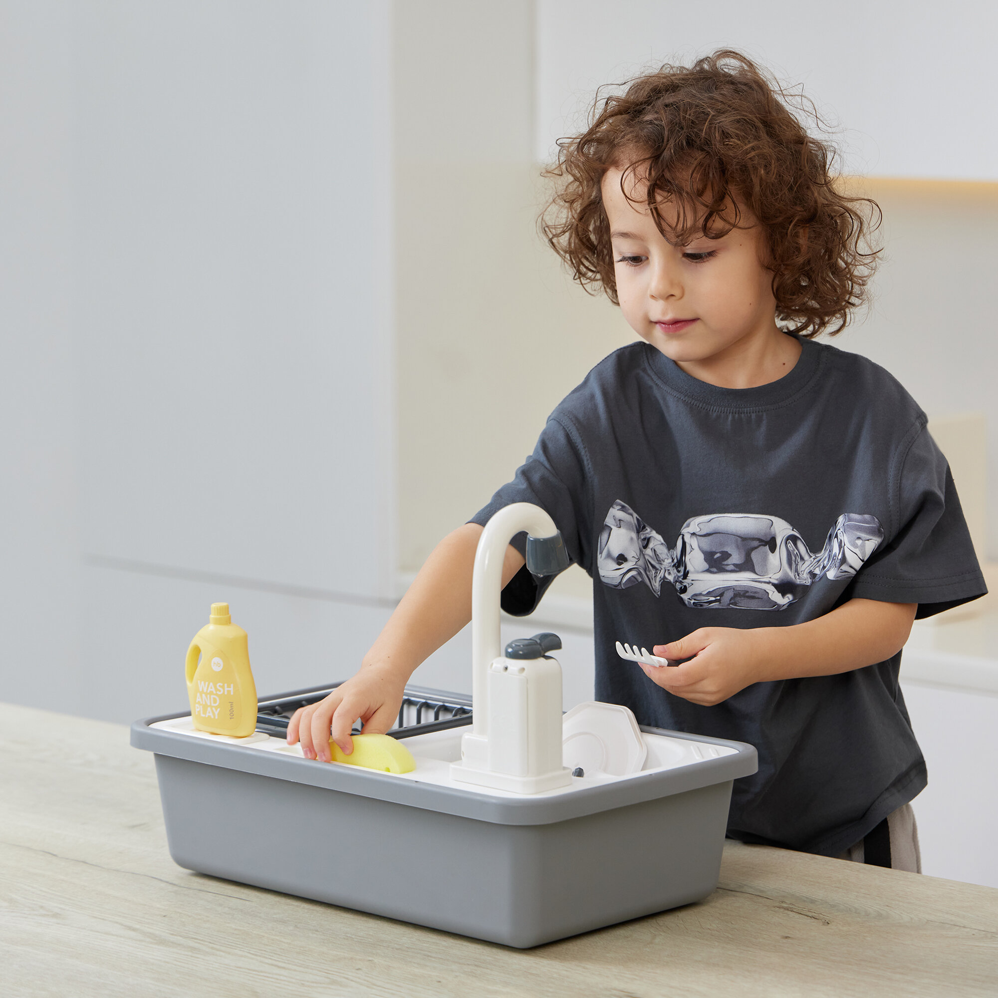 Купить 331869, Игровой набор детская кухня Happy Baby WASH AND PLAY игрушечная раковина детская с водой, 15 предметов, серый