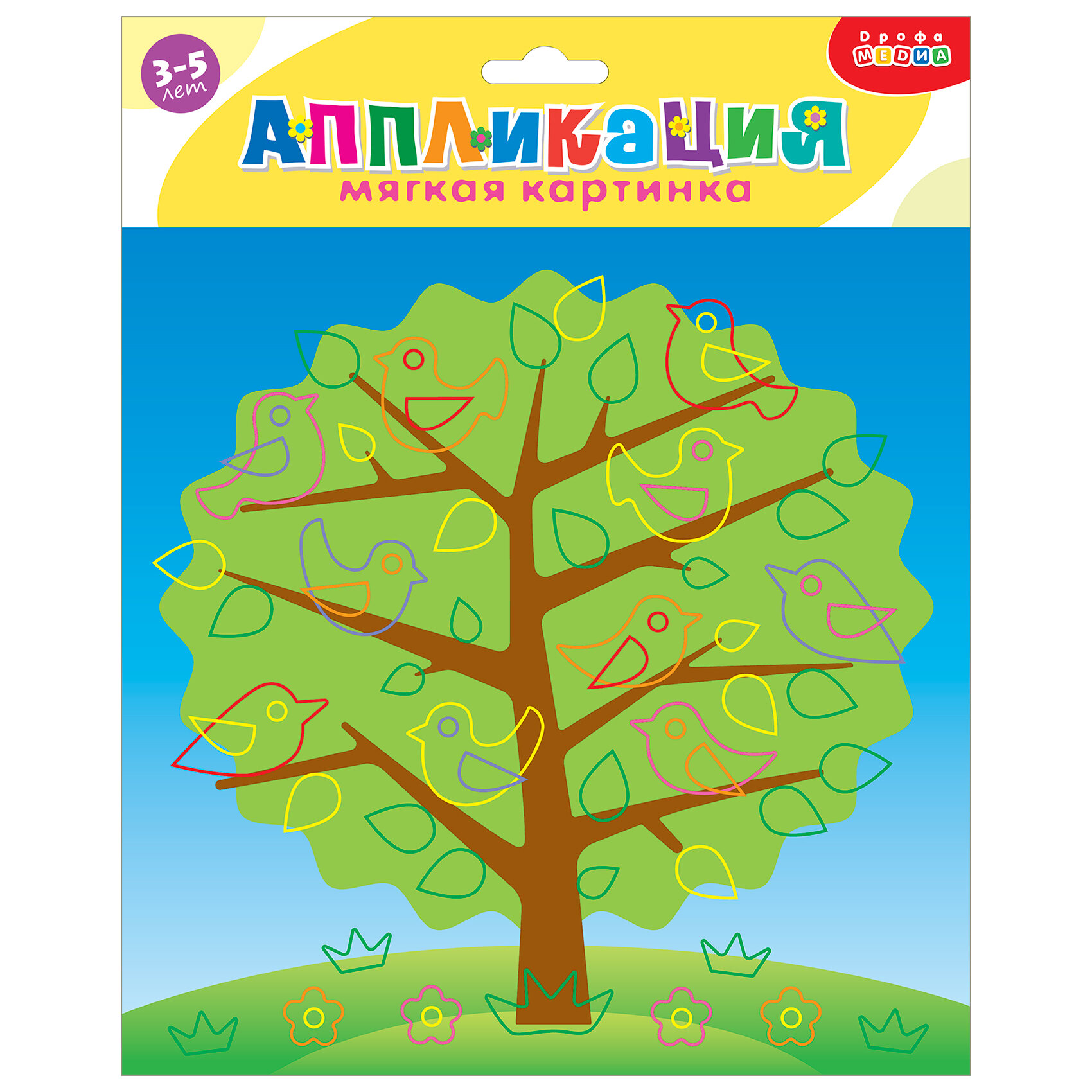 | Комплектация | В наборе: 4 цветные основы с рисунком-схемой, детали из ЭВА на самоклеящейся основе (6 цветов), декоративные элементы на самоклеящейся основе (глазки), цветная листовка-образец |