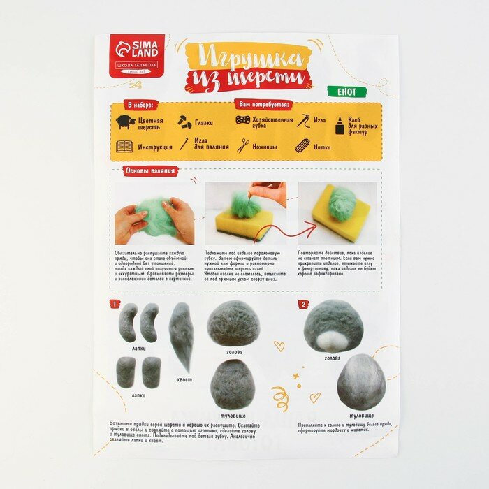 Валяние из шерсти. Игрушка «Енотик», набор для творчества интересное:
