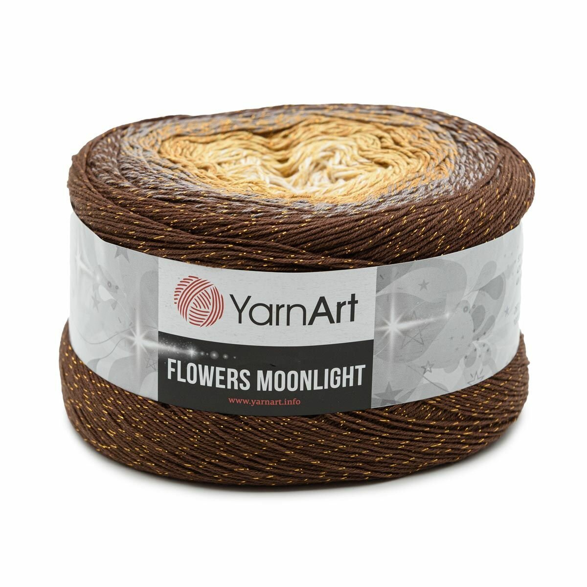 Пряжа YarnArt Flowers Moonlight коричневый-бежевый-медовый (3284), 53%хлопок/43%акрил/4%металлик, 1000м, 260г, 1шт