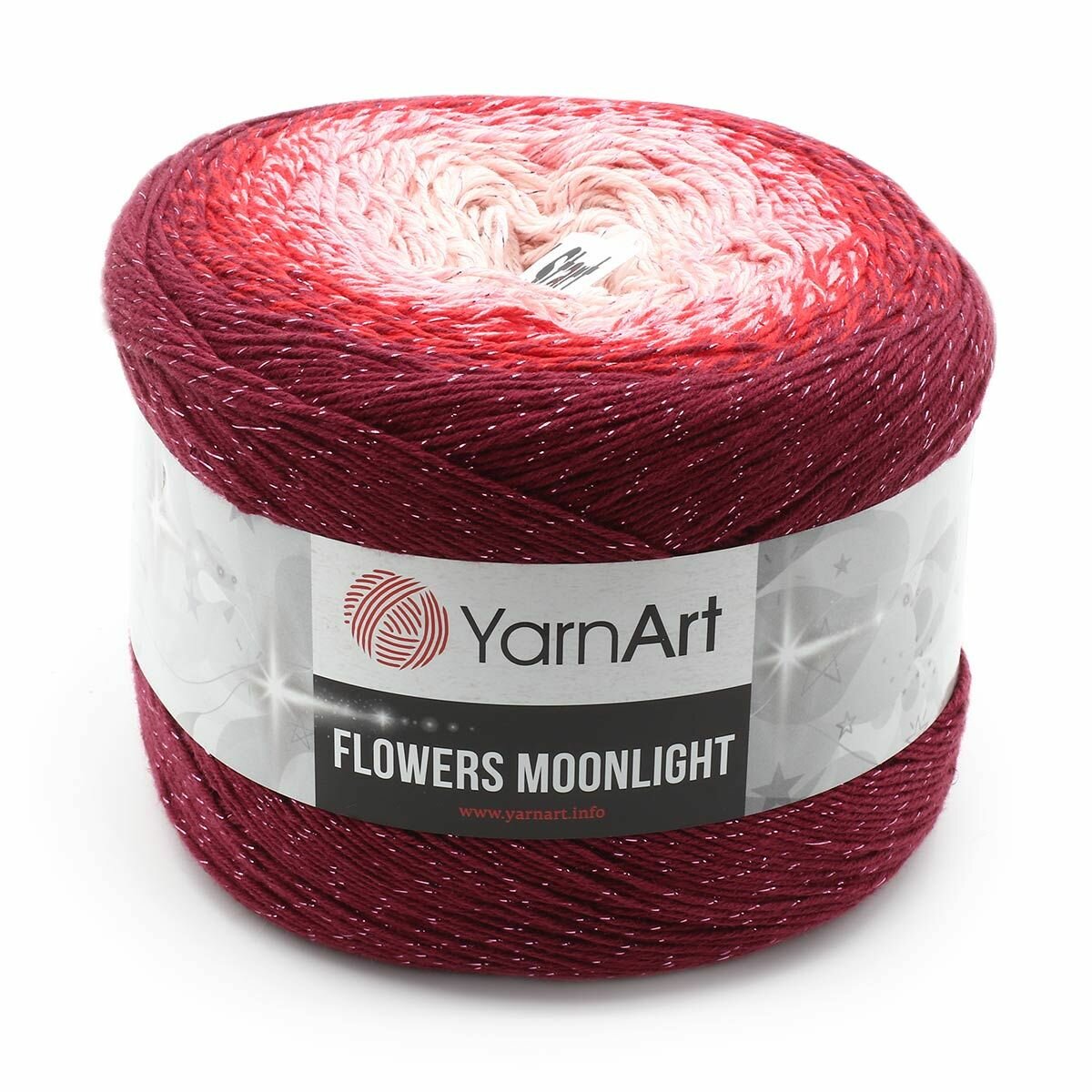 Пряжа YarnArt Flowers Moonlight бордовый-красный-св.розовый (3269), 53%хлопок/43%акрил/4%металлик, 1000м, 260г, 1шт