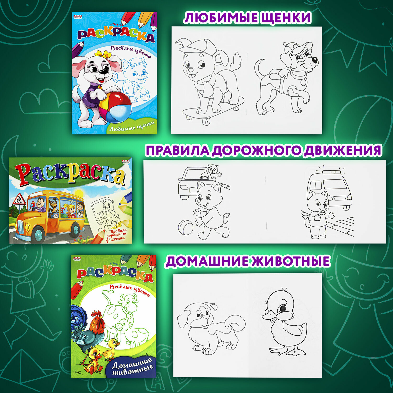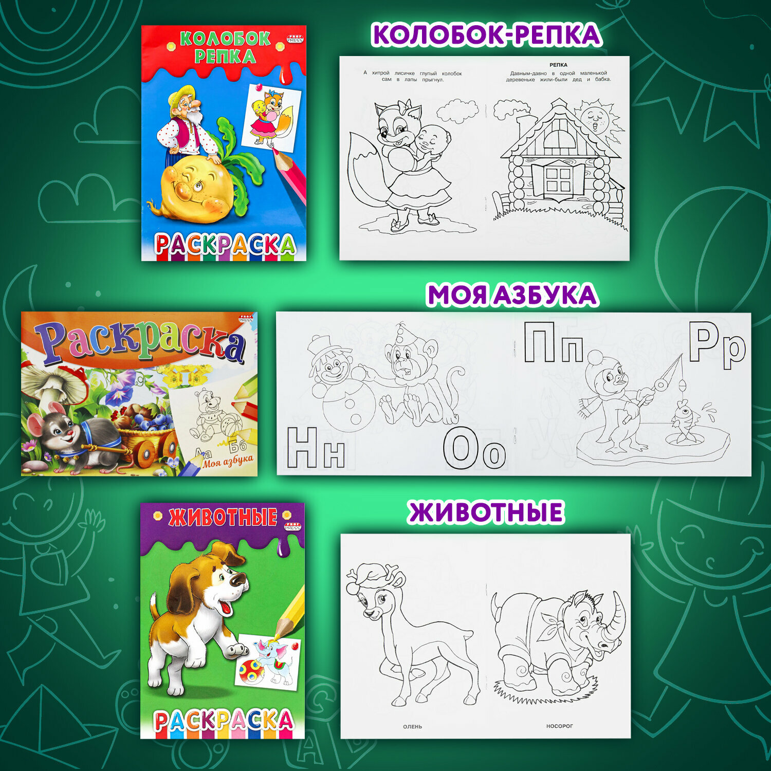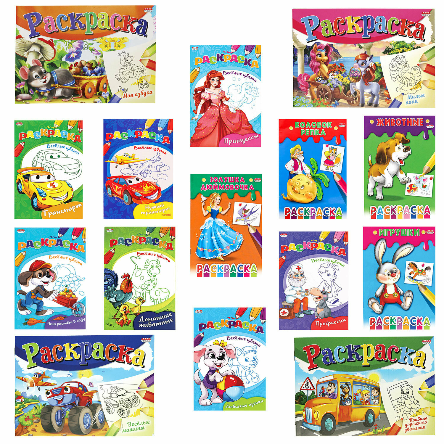 Купить Раскраска-книжка для девочек и мальчиков большая, набор 15 штук, 140x200 мм, 16 стр, ПП, 691054