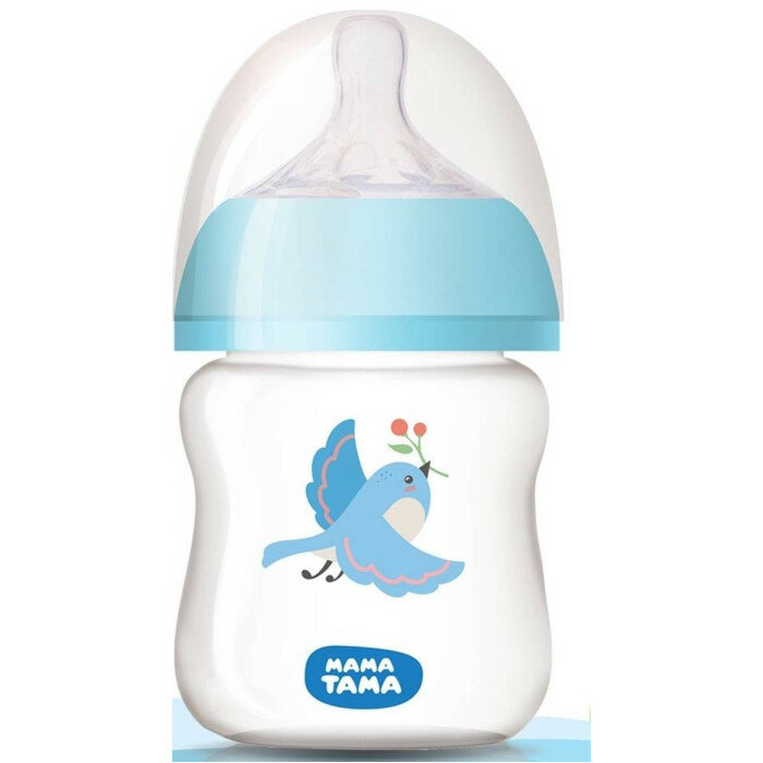 Бутылочка для кормления мама тама PP с широким горлышком с силиконовой соской, для новорожденных, 0мес.+, 120 мл., цвет: голубой