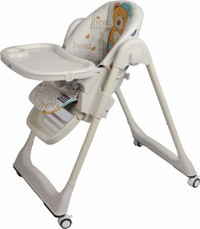 Стульчик для кормления ребенка, с корзиной, складной, с регулировкой высоты, на колесиках, бежевый