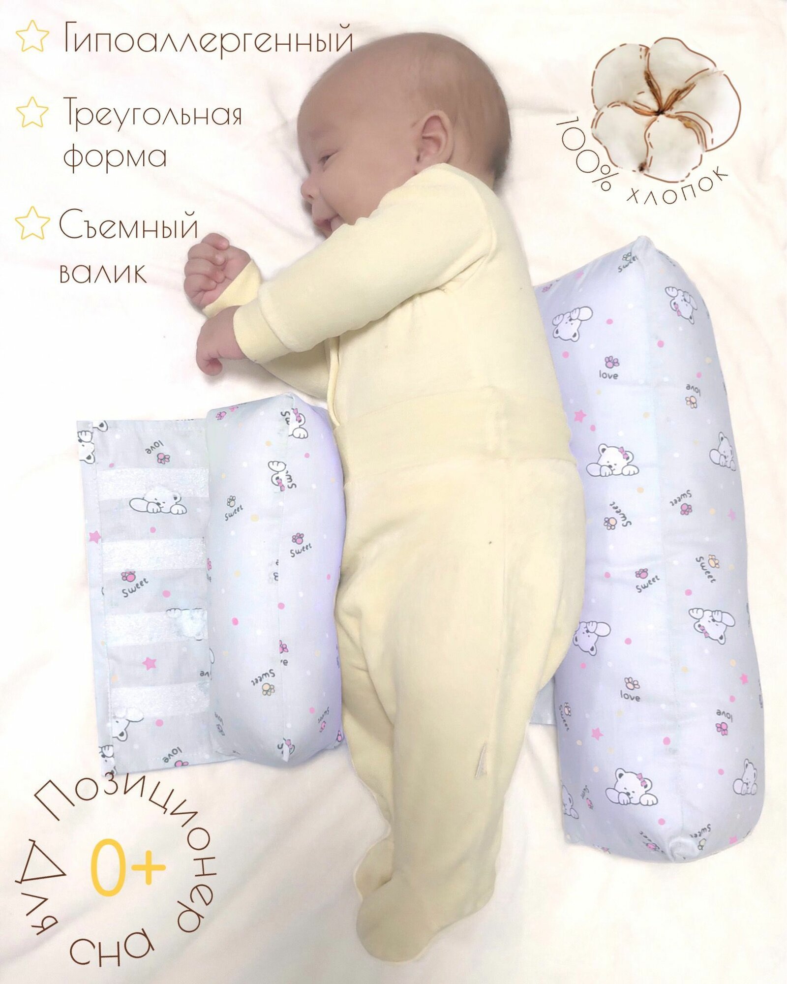 Позиционер для сна новорожденных "Подушка для грудничков Комфортная "Пушистики"