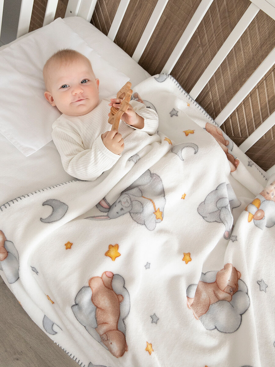 Плед для новорожденного 100х118 пушистый детский в кроватку коляску, "Спящие мишки"