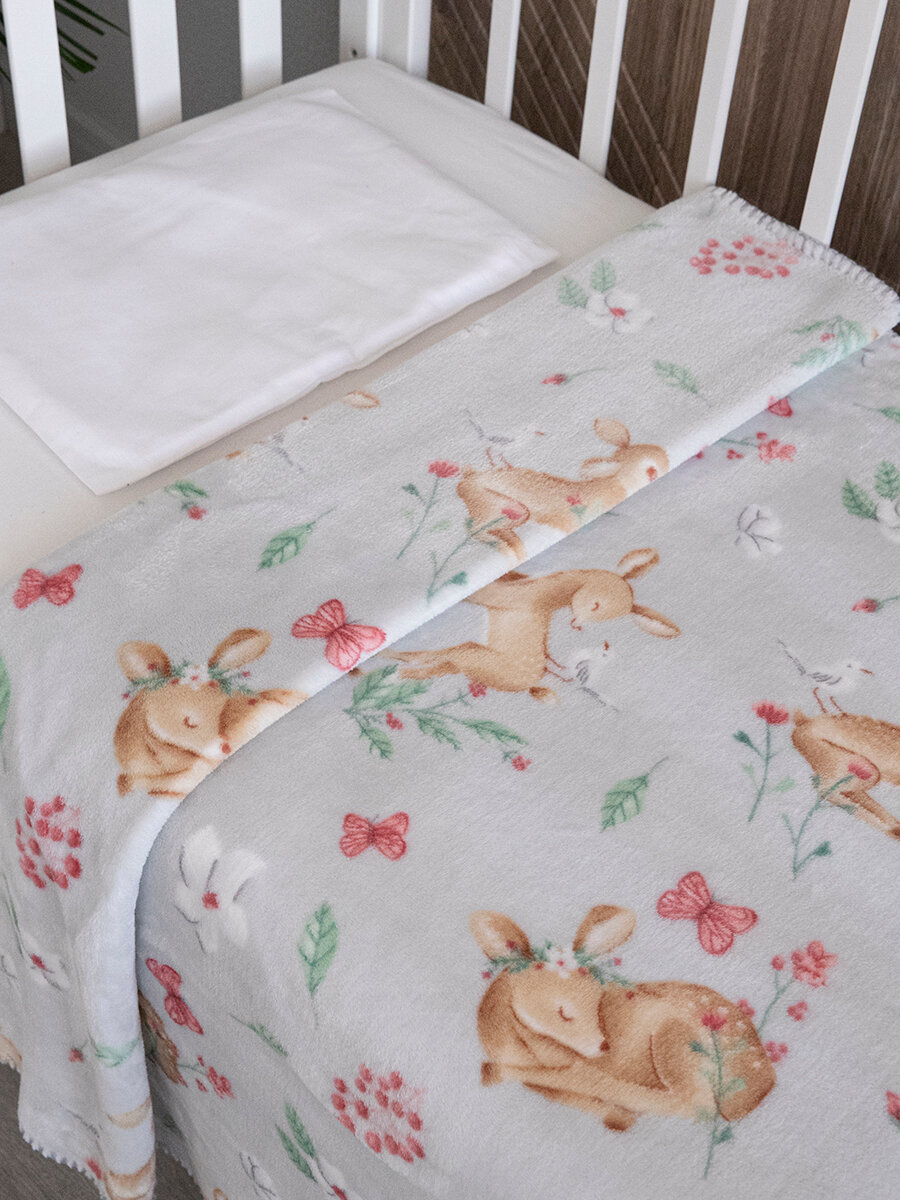 Плед для новорожденного 100х118 пушистый детский в кроватку коляску, "Оленята" серый