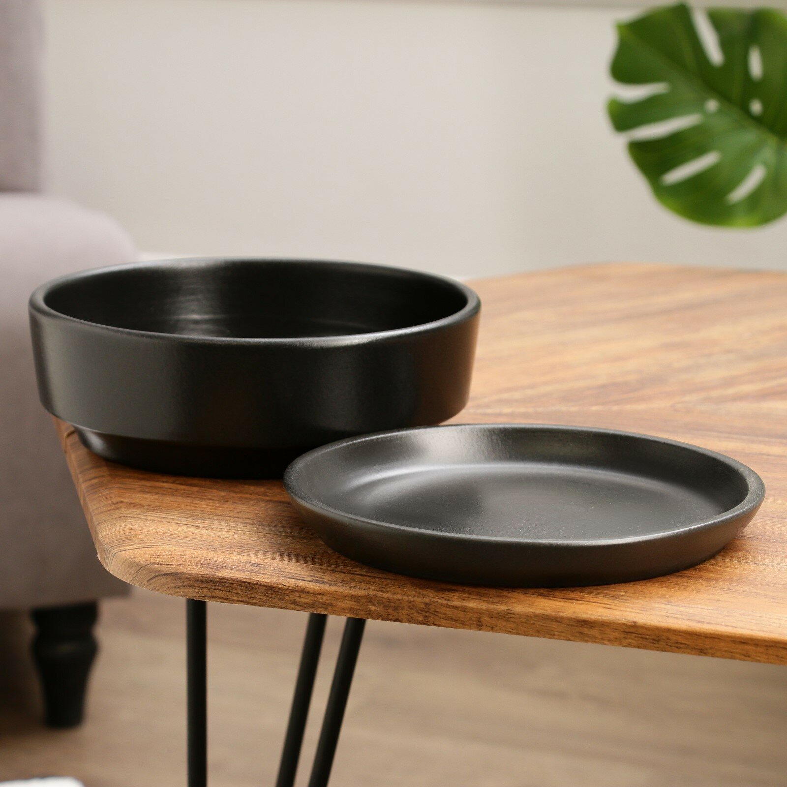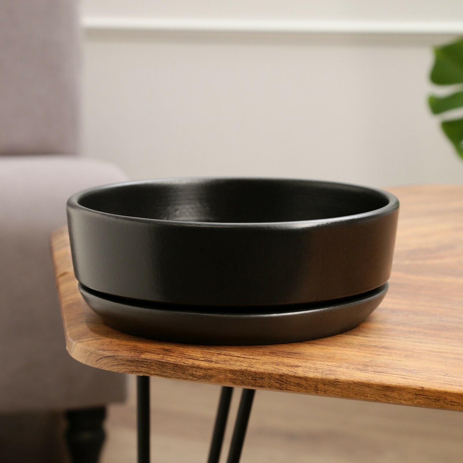 Горшок цветочный поддоном 8л, черный керамика, "Космос" (М)