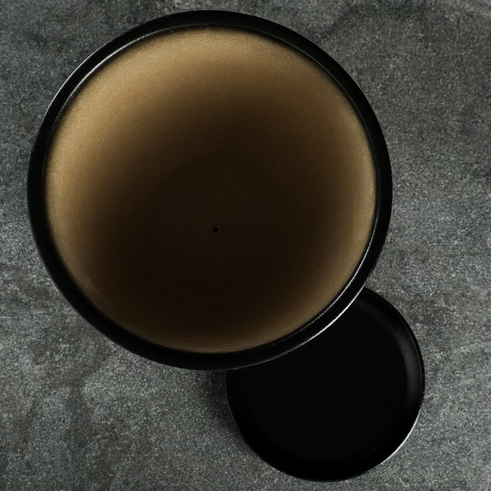 Купить Горшок цветочный поддоном 8л, черный керамика, "Космос" (М)