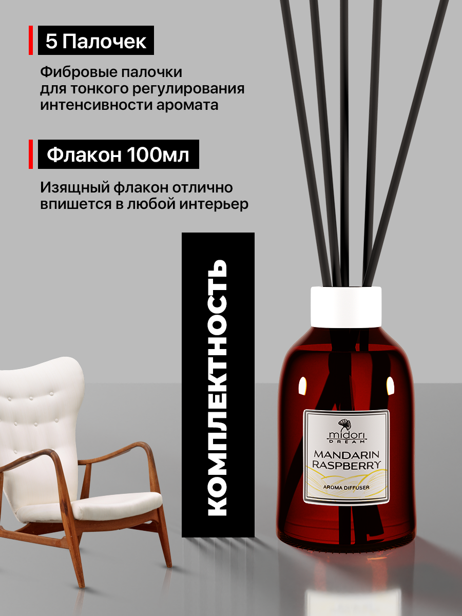 | Подробная комплектация | Ароматизатор для дома - 1шт, фибровые палочки - 5шт |