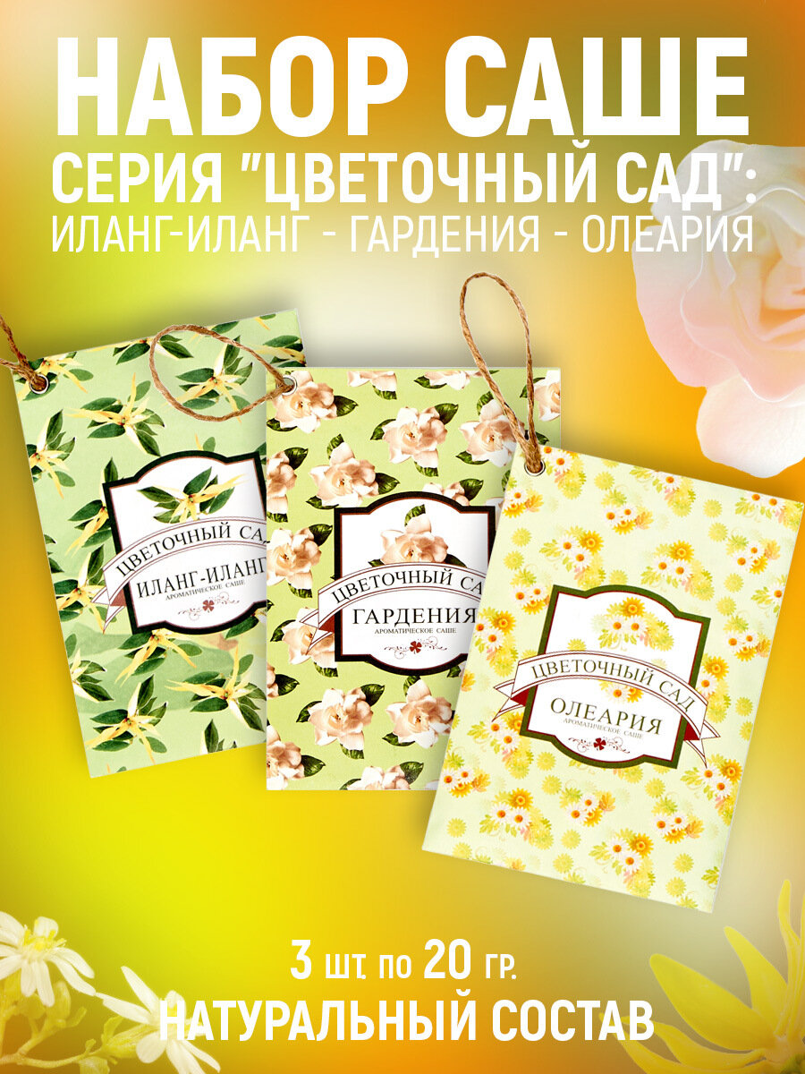 Купить Ароматическое саше"Индокитай"(набор из 3 шт): Иланг-Иланг, Гардения, Олеария
