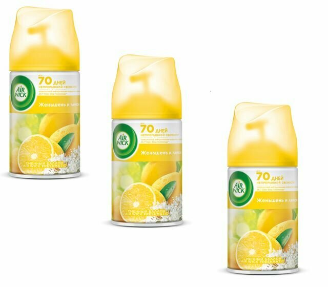 Купить AirWick Освежитель воздуха Refill Лимон и Женьшень, сменный баллон, 250мл, 3 уп