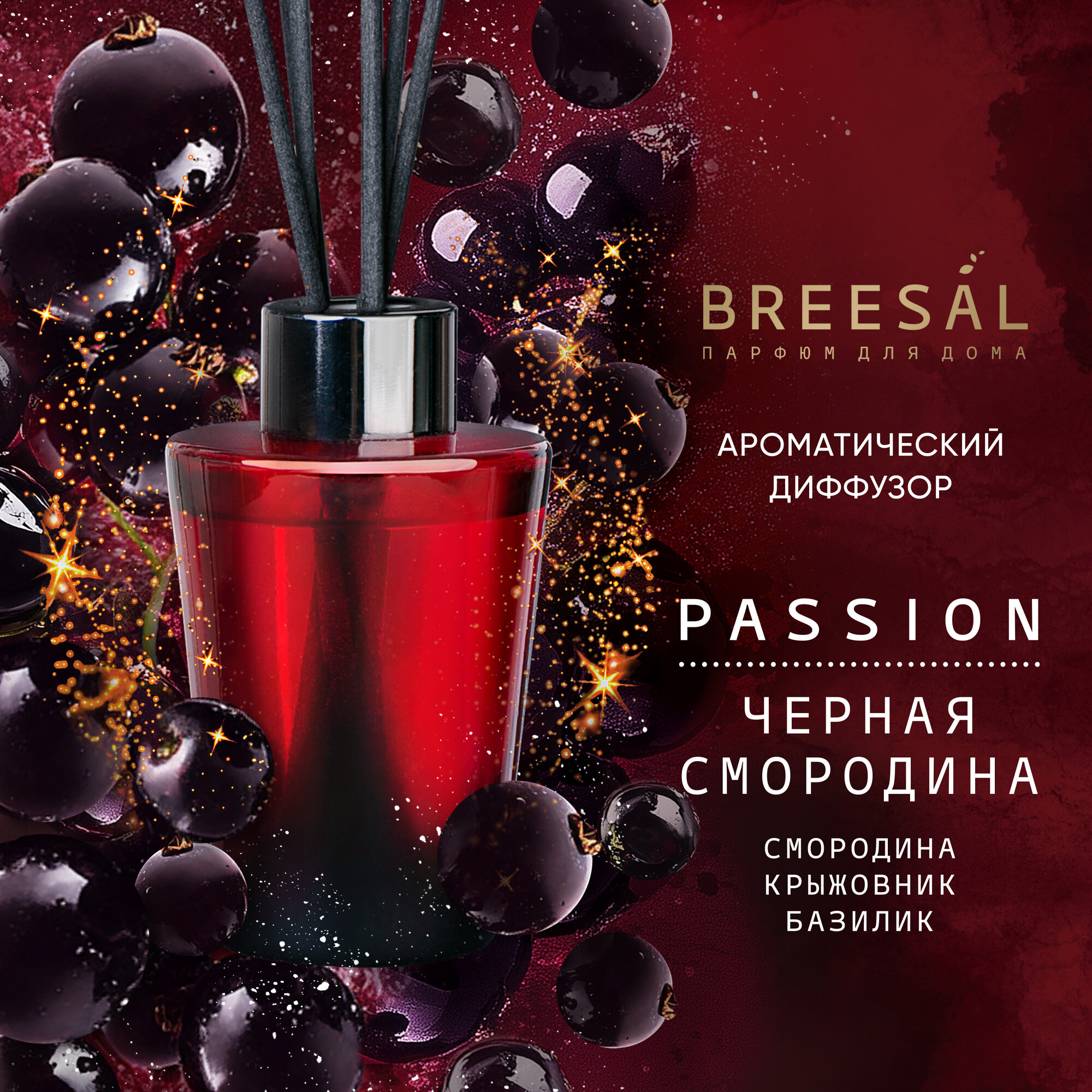 Купить Диффузор для дома с палочками Breesal Passion ароматический диффузор Черная смородина, 70 мл