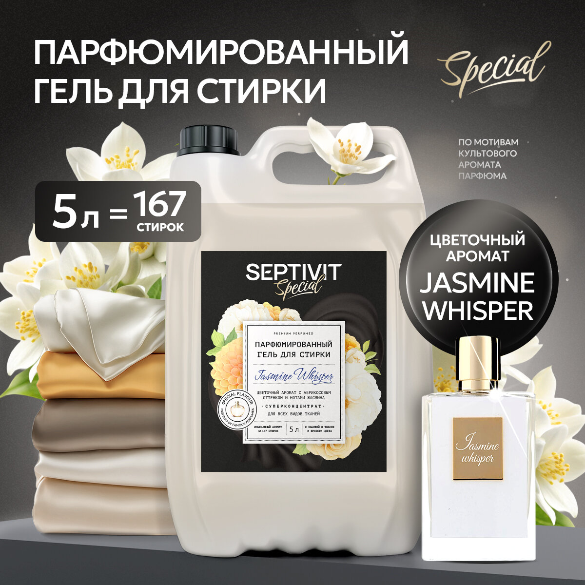 Гель для стирки Septivit Special "Jasmine Whisper" / Средство для стирки / 5 литров интересное: