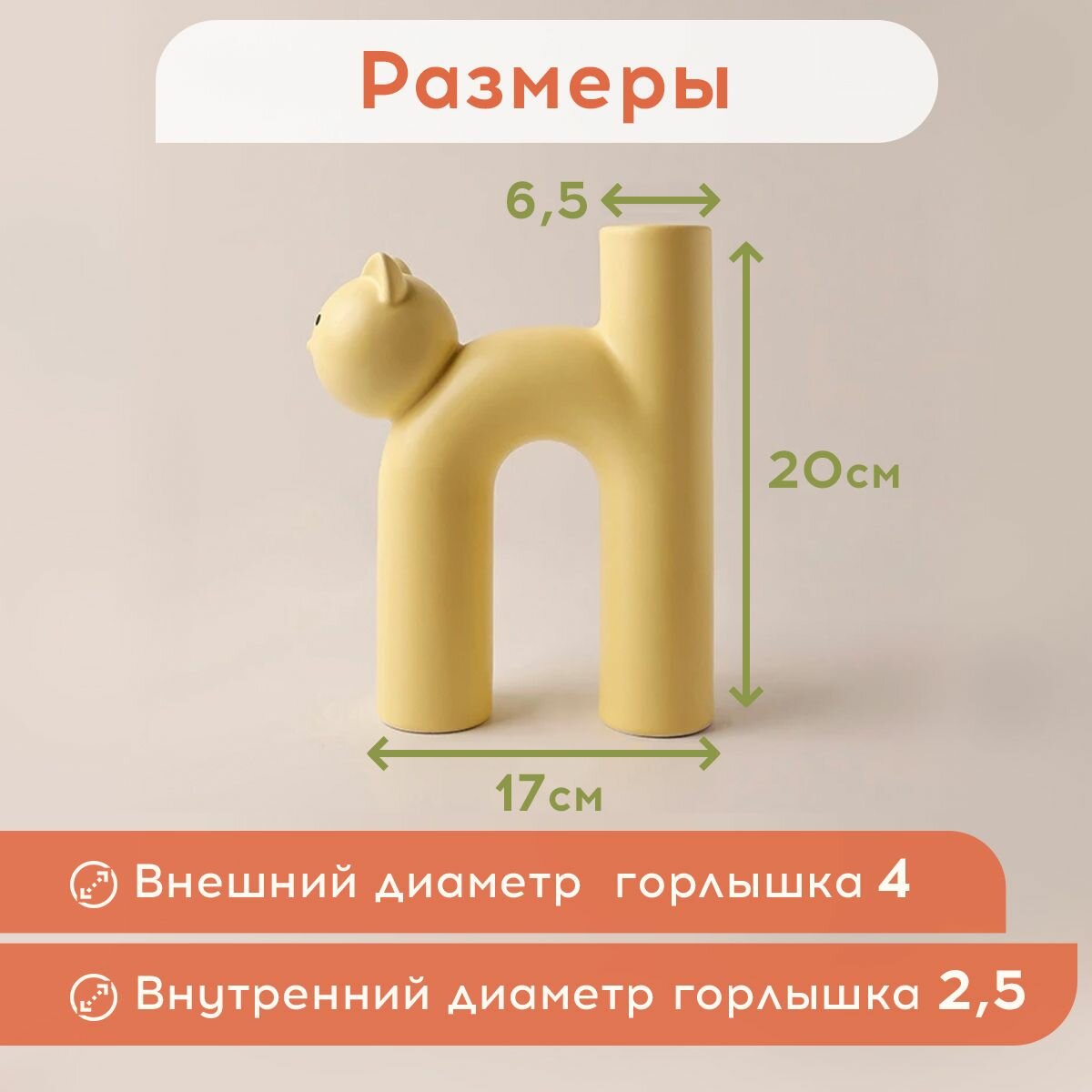 Ваза Conflate декоративная, керамическая для цветов и сухоцветов в форме кошки, желтая интересное:
