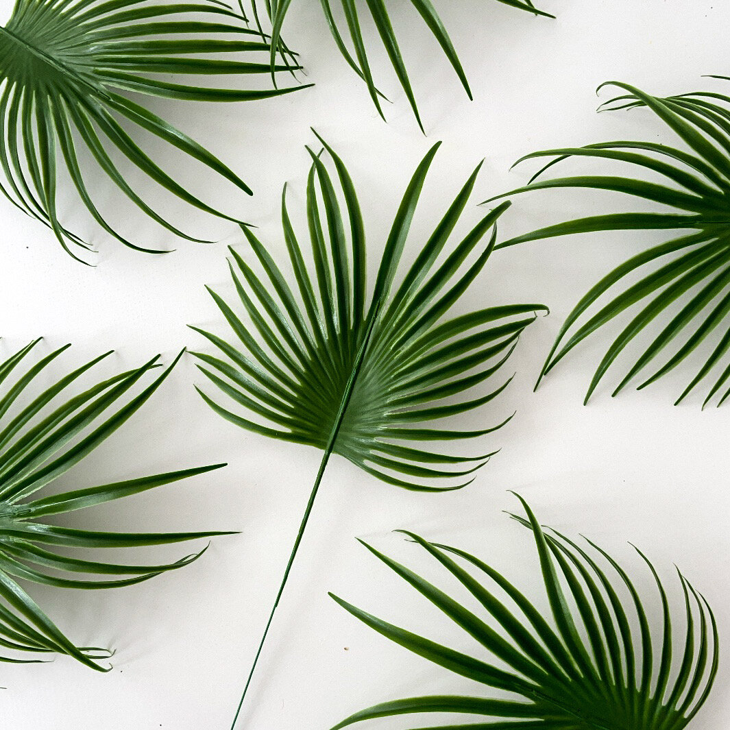 Пальма, искусственная зелень, высококачественный пластик, 36 см, набор 6 шт, цвет насыщенный зеленый