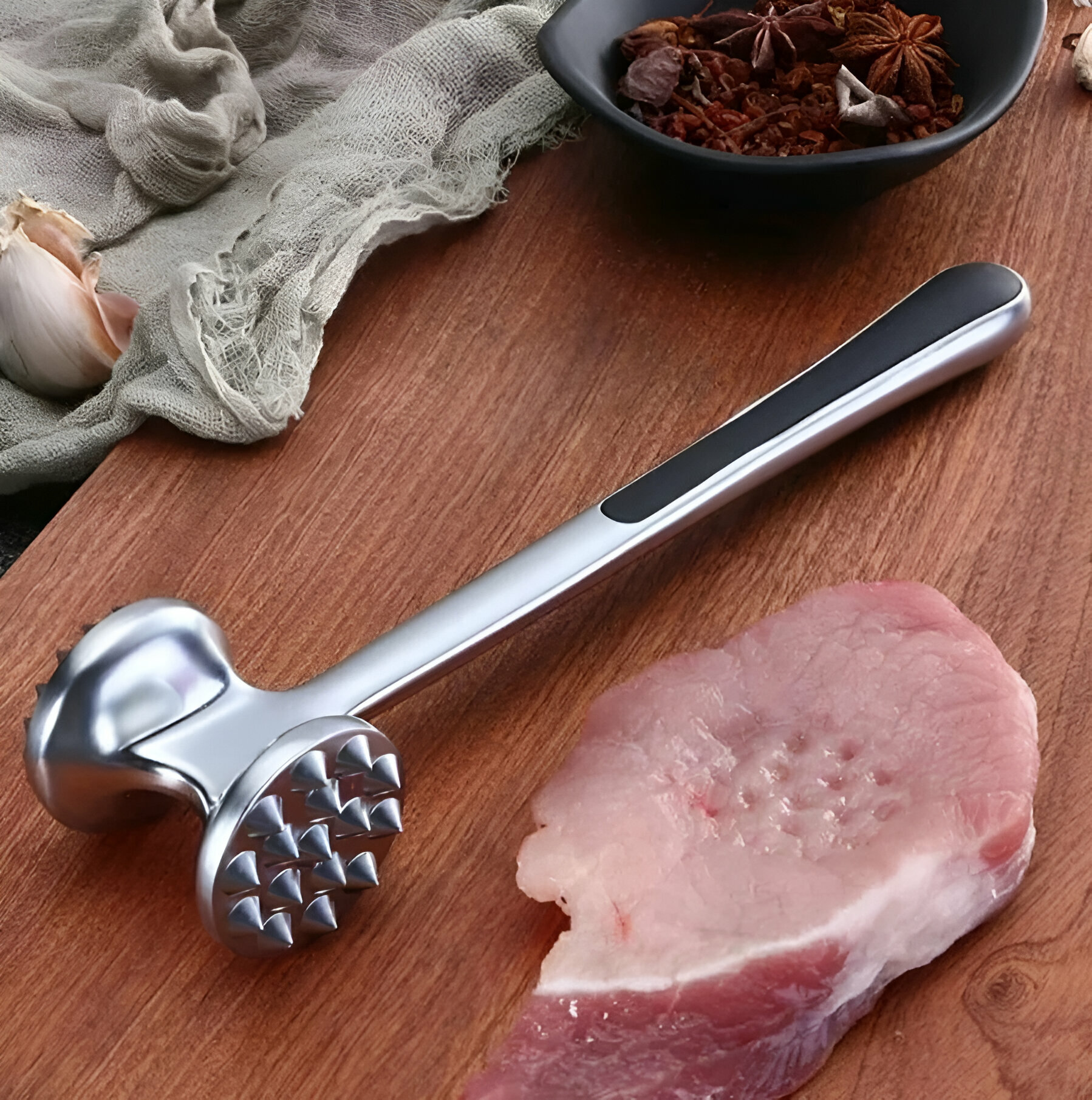 Молоток для отбивания мяса с серебристой ручкой, стальной