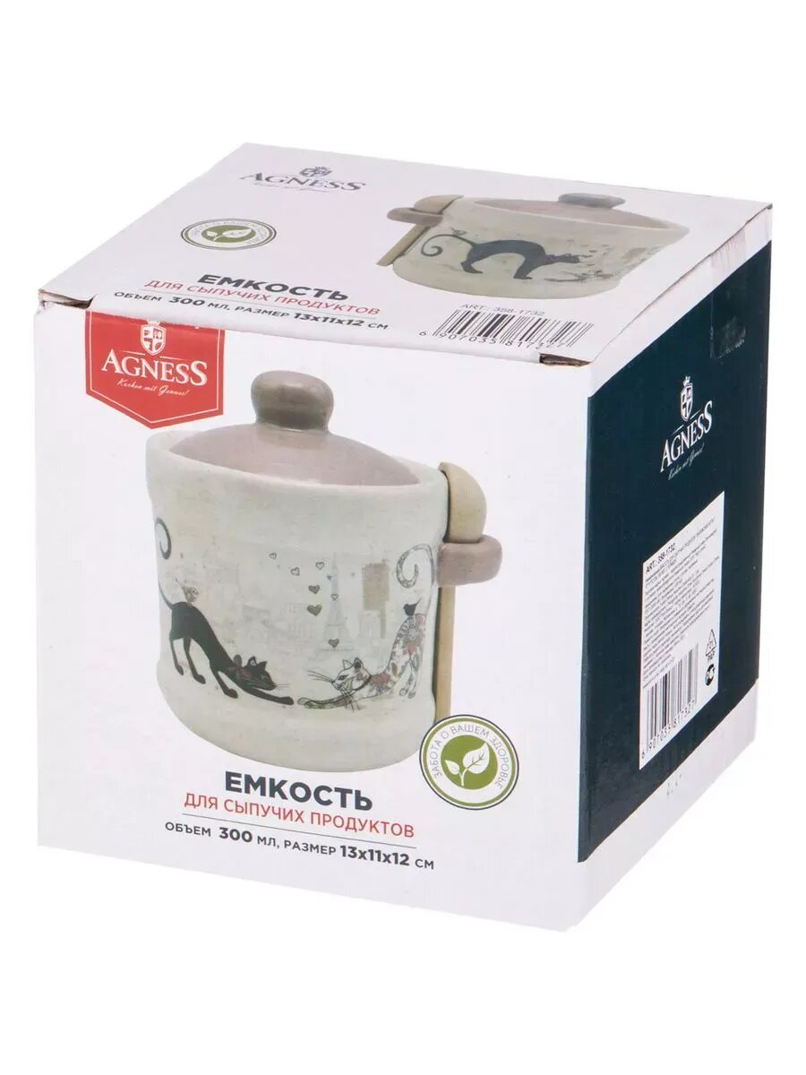 Сахарница парижские коты 13*11*12 см. 300 мл. С ложкой KSG-358-1732