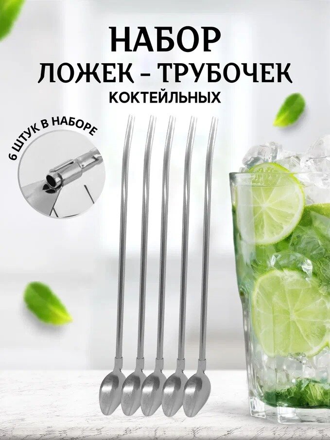 Набор коктейльных ложек-трубочек 6 шт Посуда для сервировки серебристый интересное: