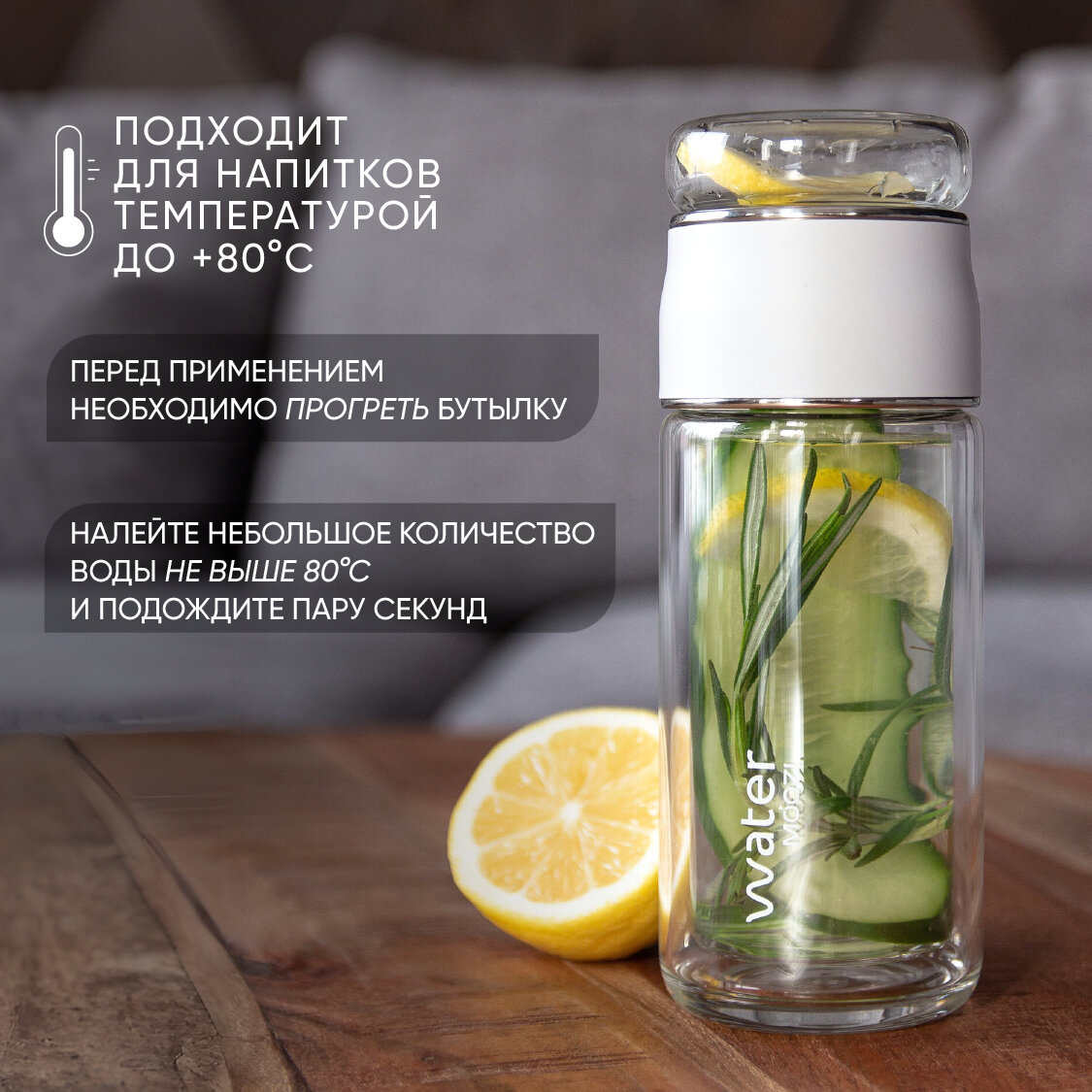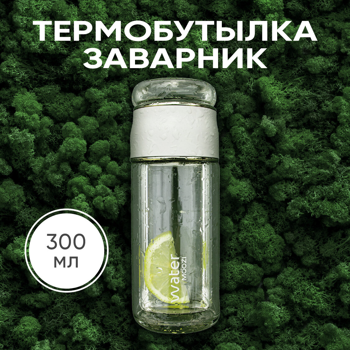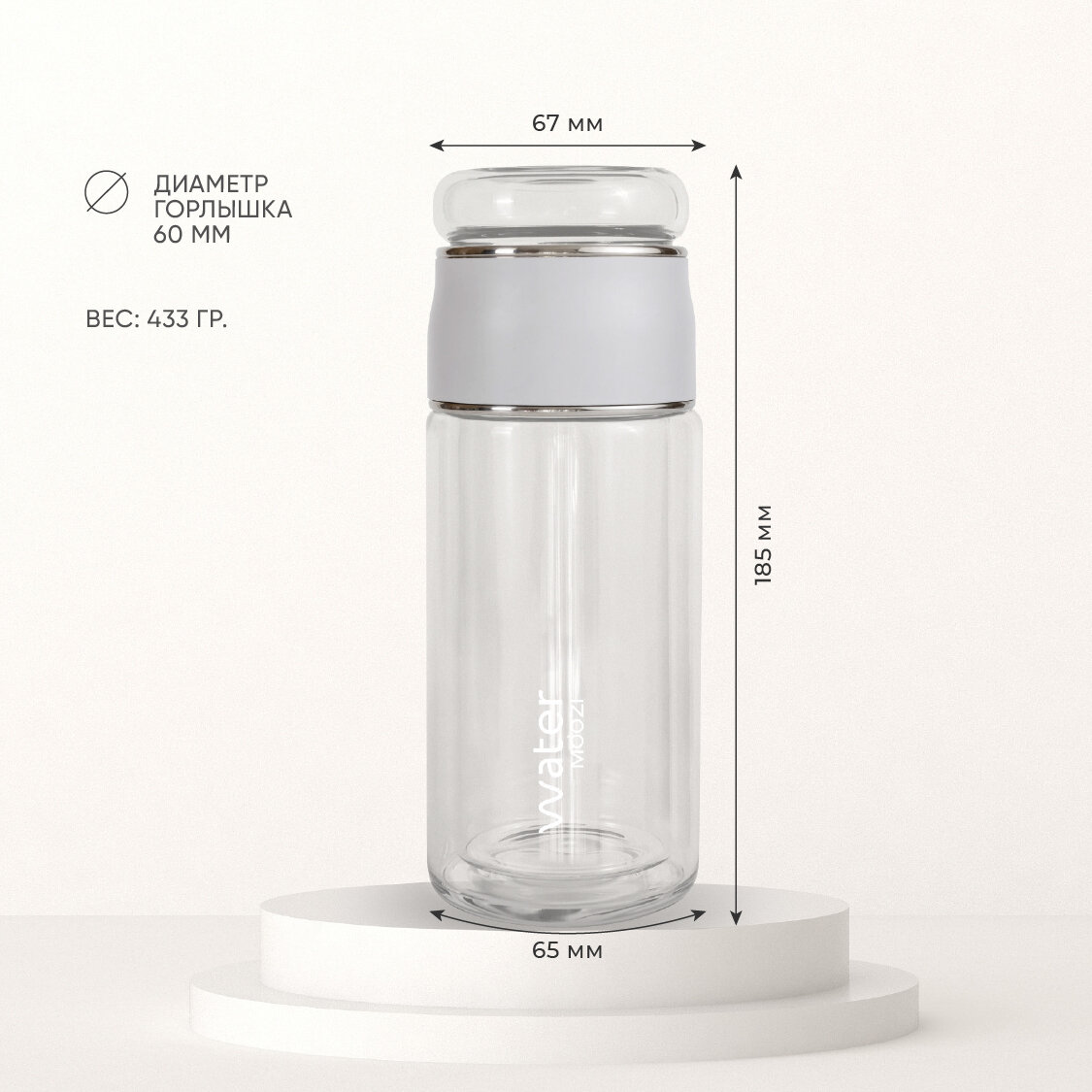 Стеклянная бутылка MOOZI Water для заваривания чая, объем 300 мл, цвет белый интересное: