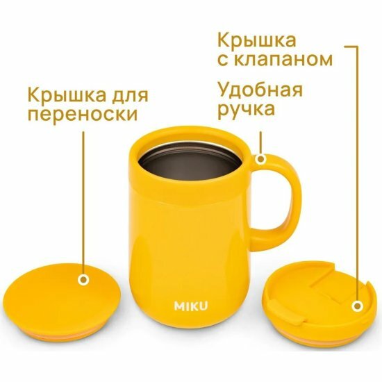 Термокружка Miku TH-MGH-500Y с ручкой, желтый, 0,5 л интересное: