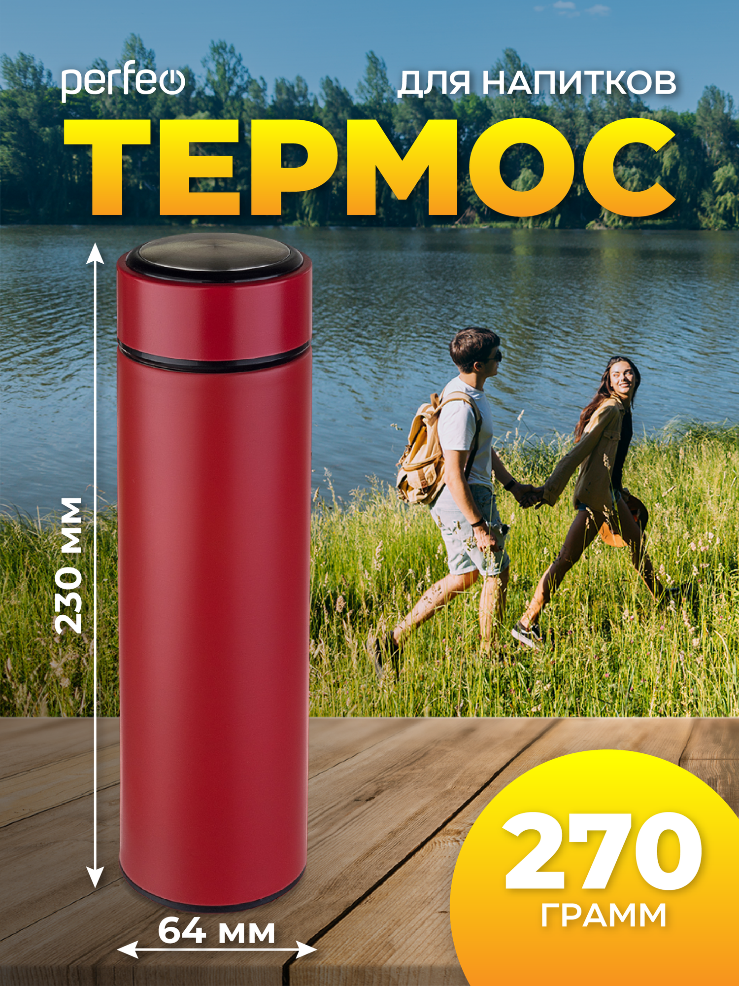 Термос PERFEO для напитков с пробкой-кнопкой, объем 0,5 л, нерж. сталь ( PF_D0214)