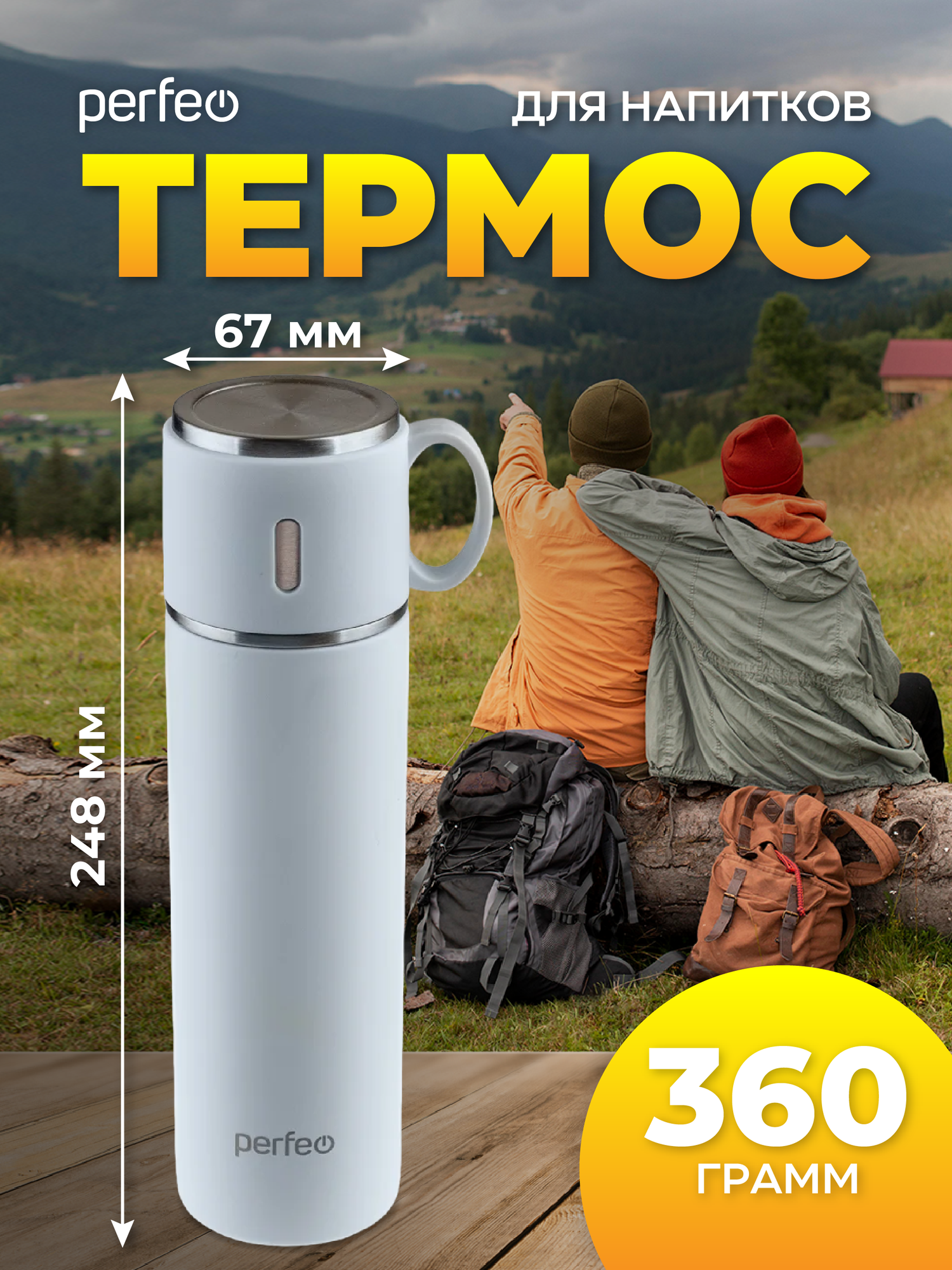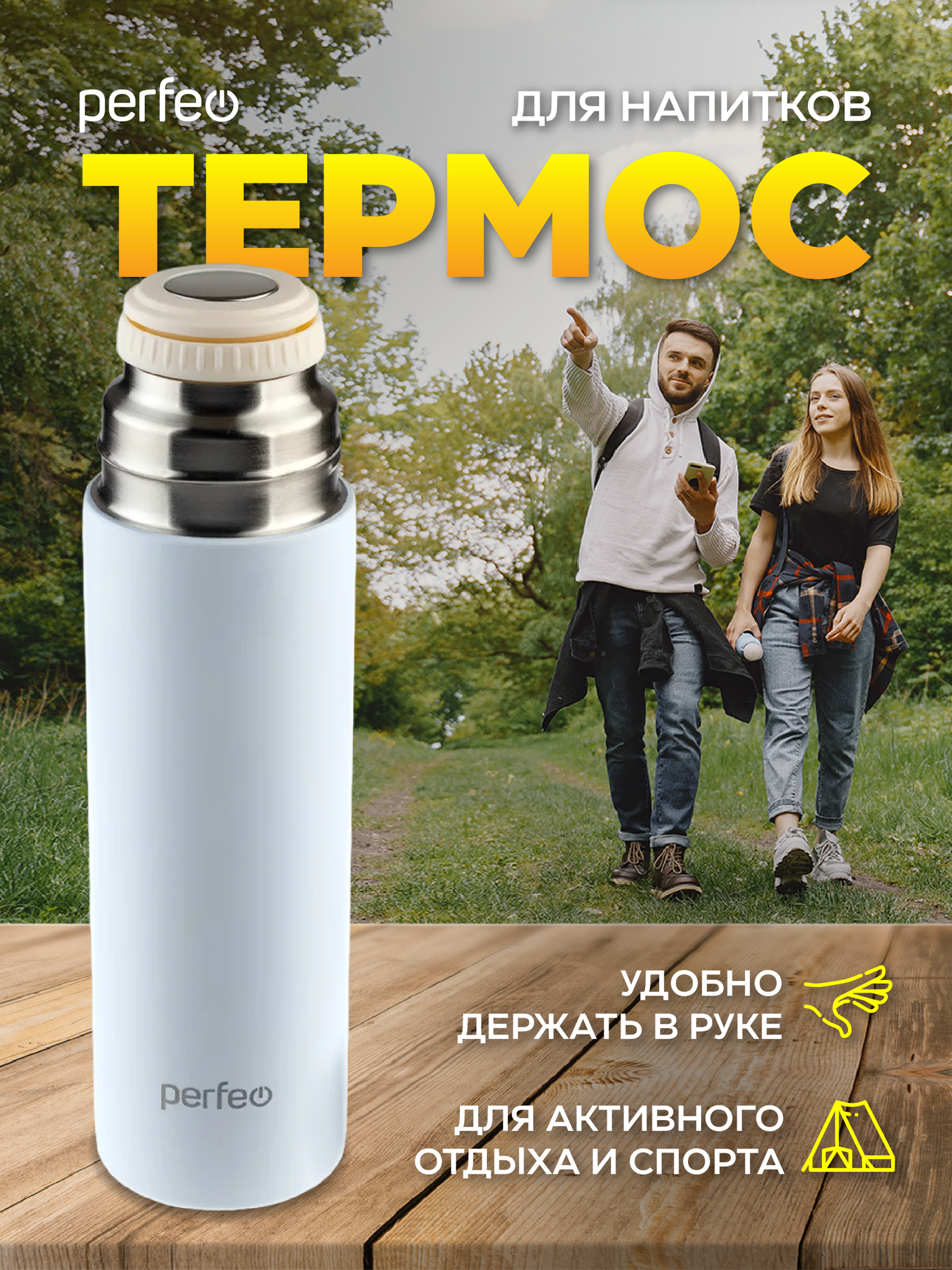 Купить Термос PERFEO для напитков с пробкой-кнопкой, крышкой-кружкой, объем 0,5 л, белый (PF_D0213)