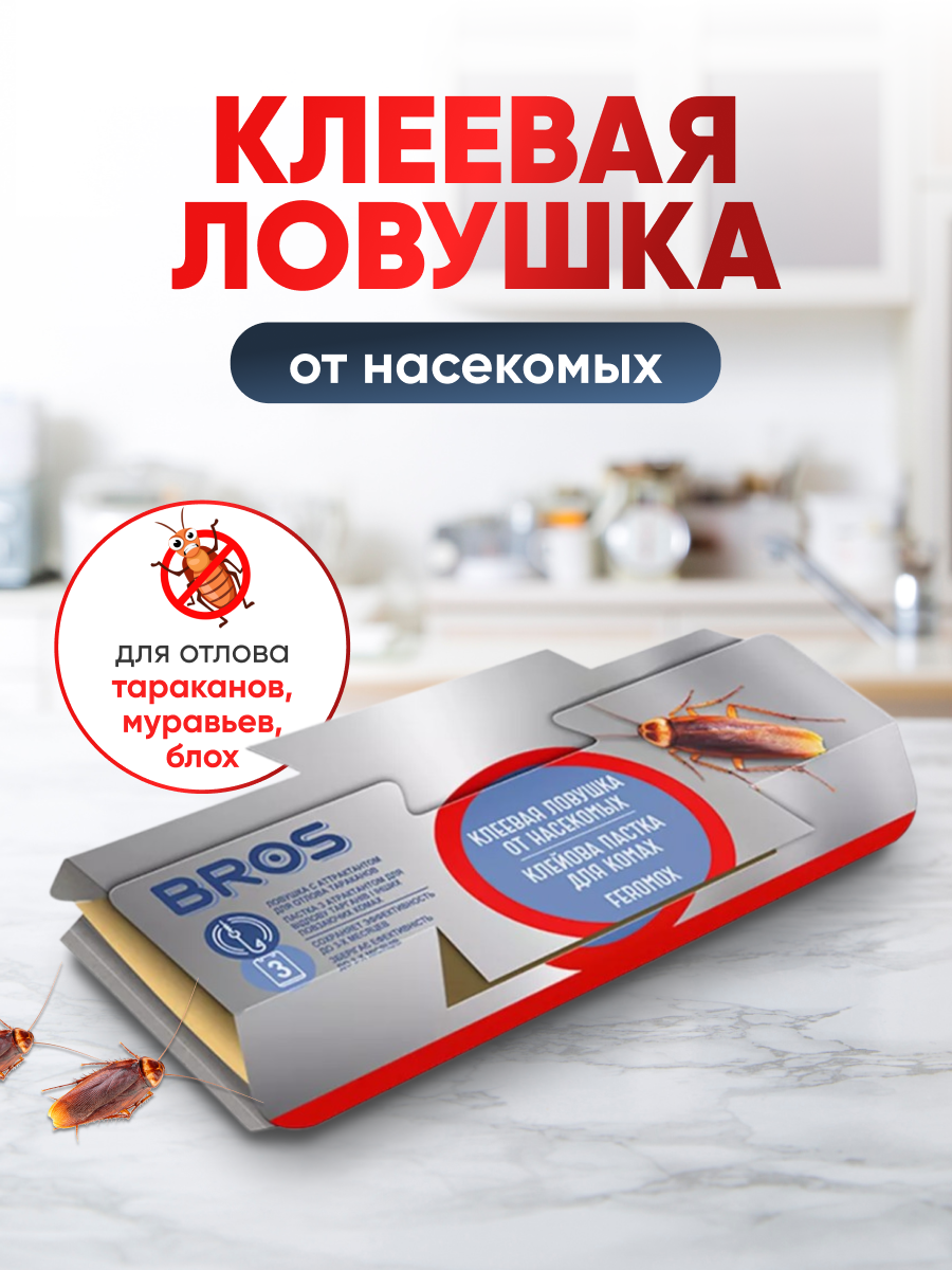 Клеевая ловушка для тараканов с феромонами Bros / эффективное средство от насекомых (муравьев, блох), 2 шт