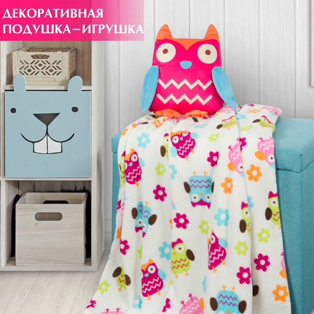 Декоративная подушка Guten Morgen "Сова", для детей, полиэстер, 40x27 см интересное: