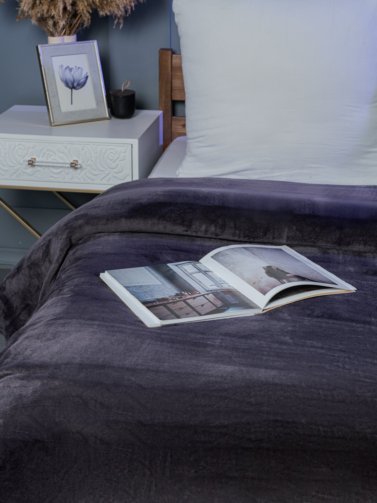 Плед 200х220 LOVEBERRY из велсофта Евро в спальню однотонный, синий, подарок маме
