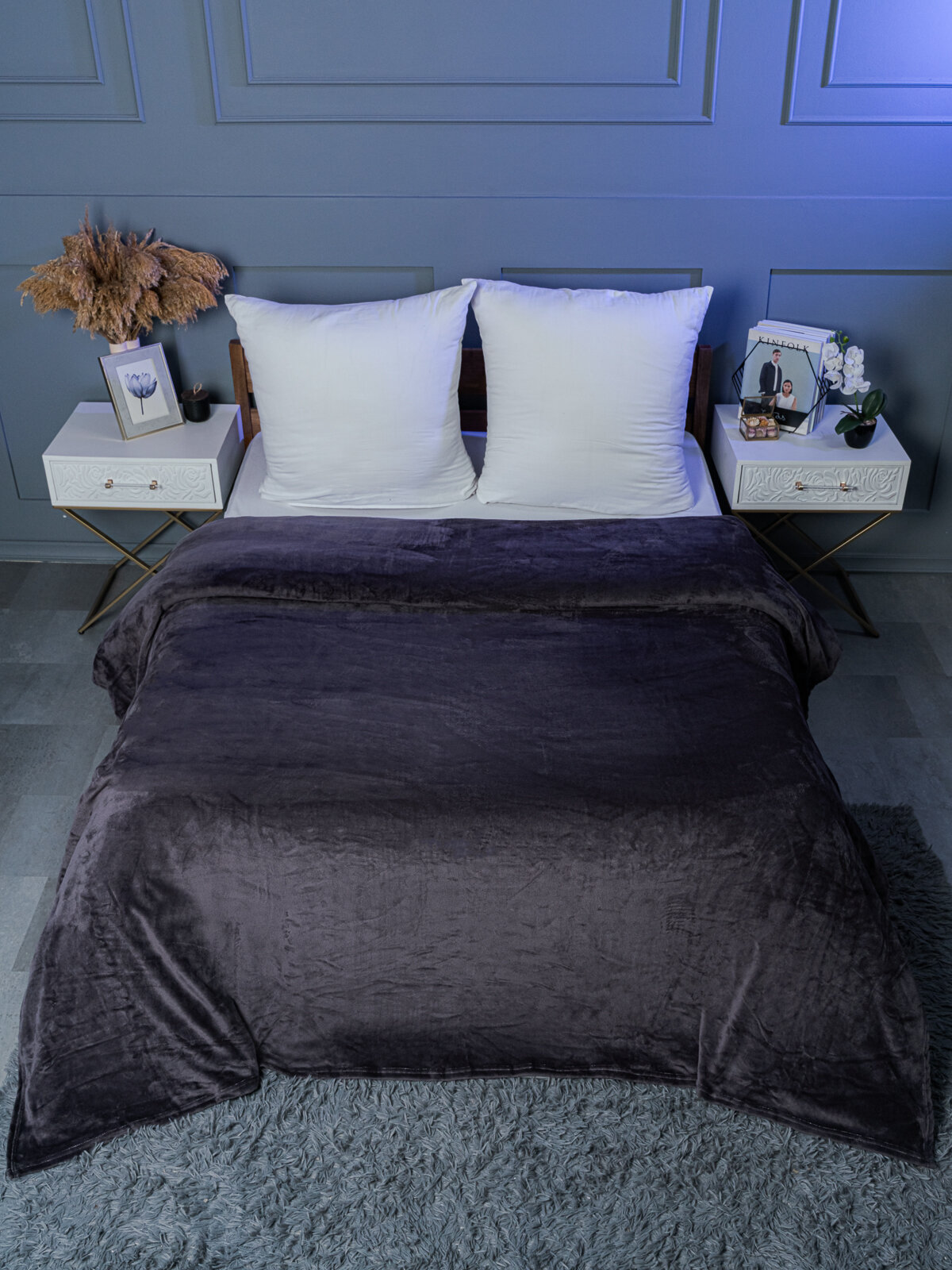 Плед 150х200 LOVEBERRY из велсофта плюшевый на диван однотонный, синий, подарок маме