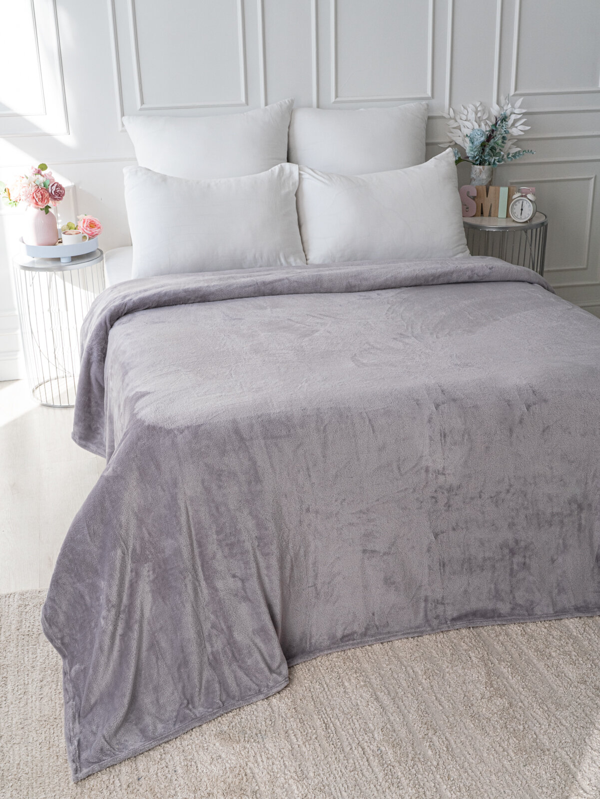 Плед 150х200 LOVEBERRY из велсофта плюшевый на диван однотонный, серый, подарок маме