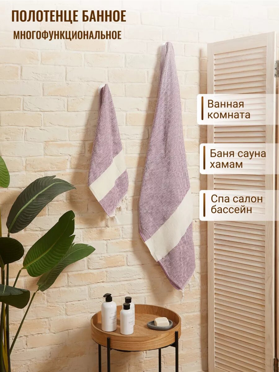 СохранитьНабор банных полотенец AtlasPlus 2 шт, пештемаль, хлопок, фиолетовый интересное: