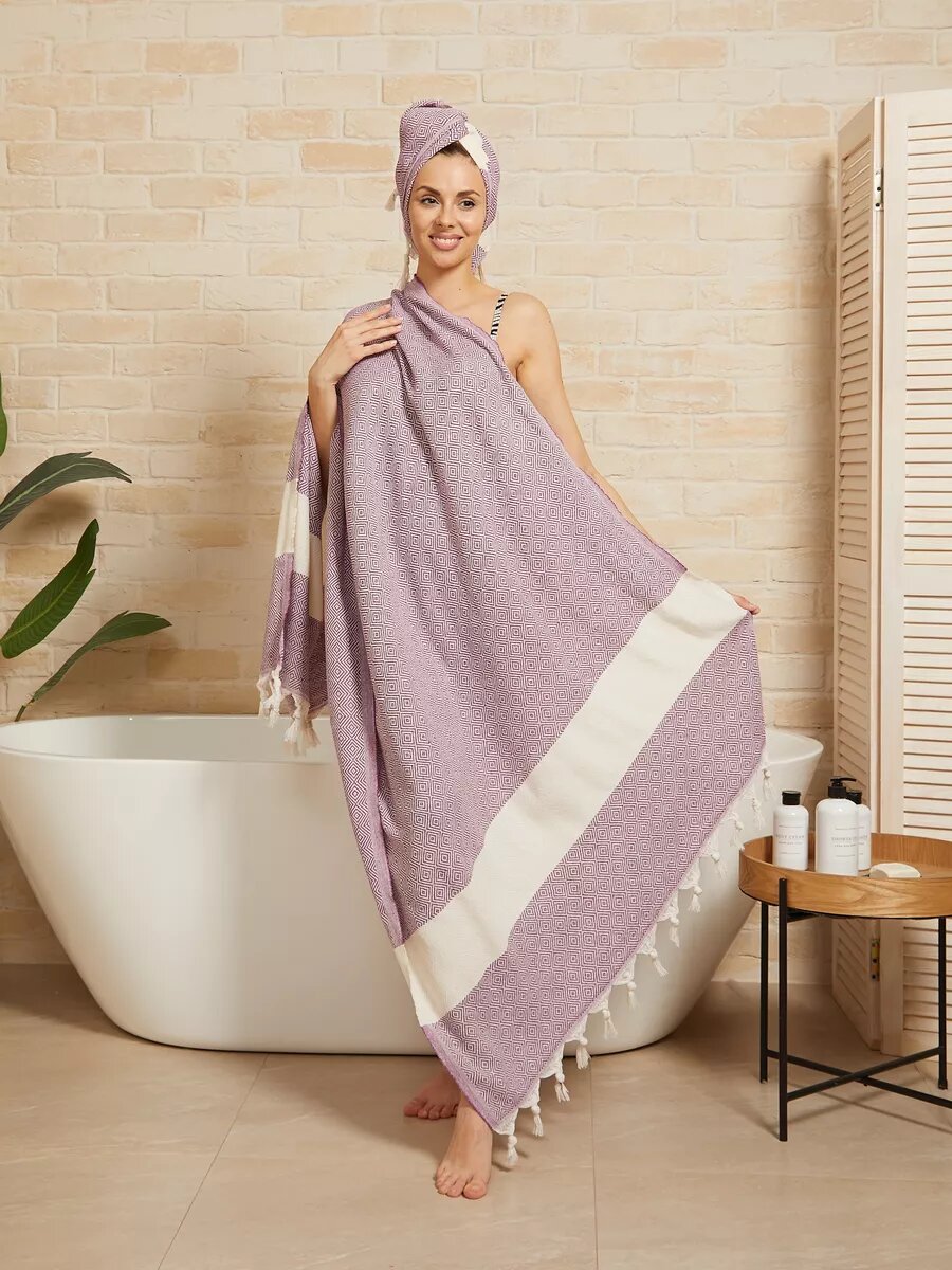 Набор банных полотенец AtlasPlus 2 шт., пештемаль, хлопок, фиолетовый