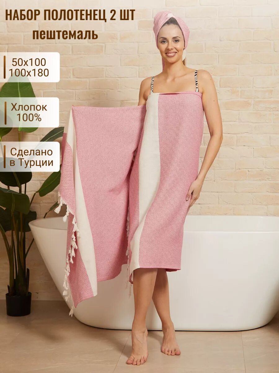 Набор банных полотенец AtlasPlus 2 шт., пештемаль, хлопок, розовый