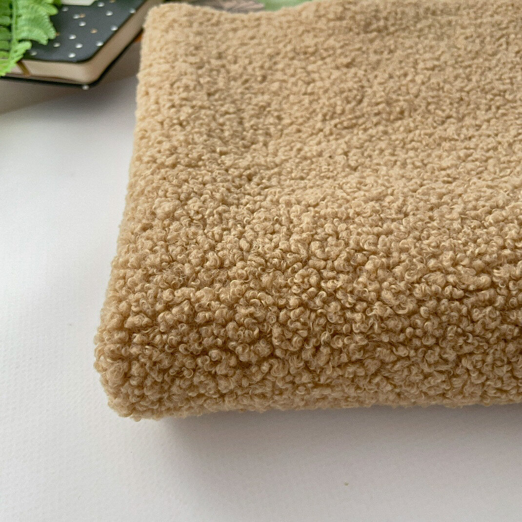 Мех искусственный для игрушек, кудрявый, ткань букле, отрез 100*50 см, цвет Бежевый, 100 п/э.