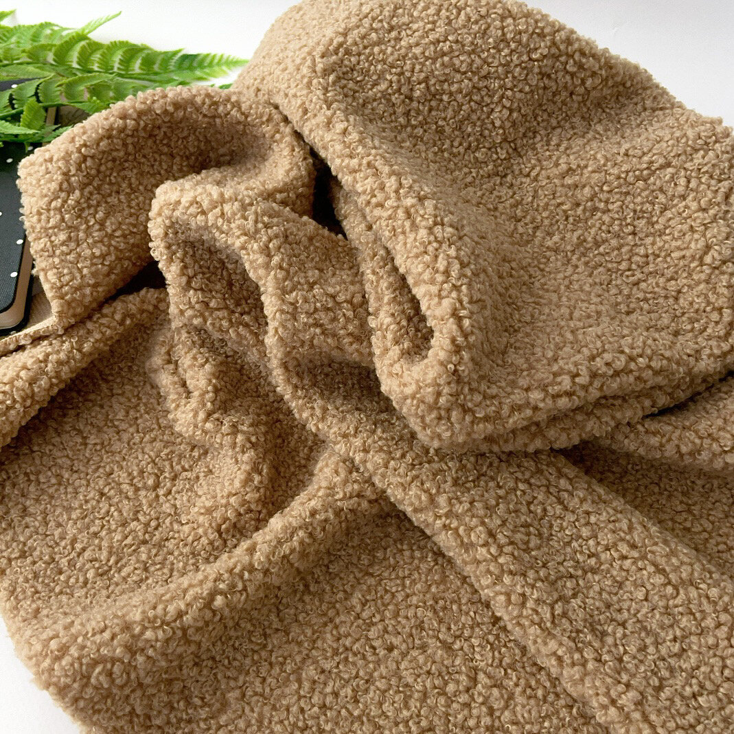 Мех искусственный для игрушек, кудрявый, ткань БУКЛЕ, отрез 100*45 см, цвет Бежевый, 100 п/э.