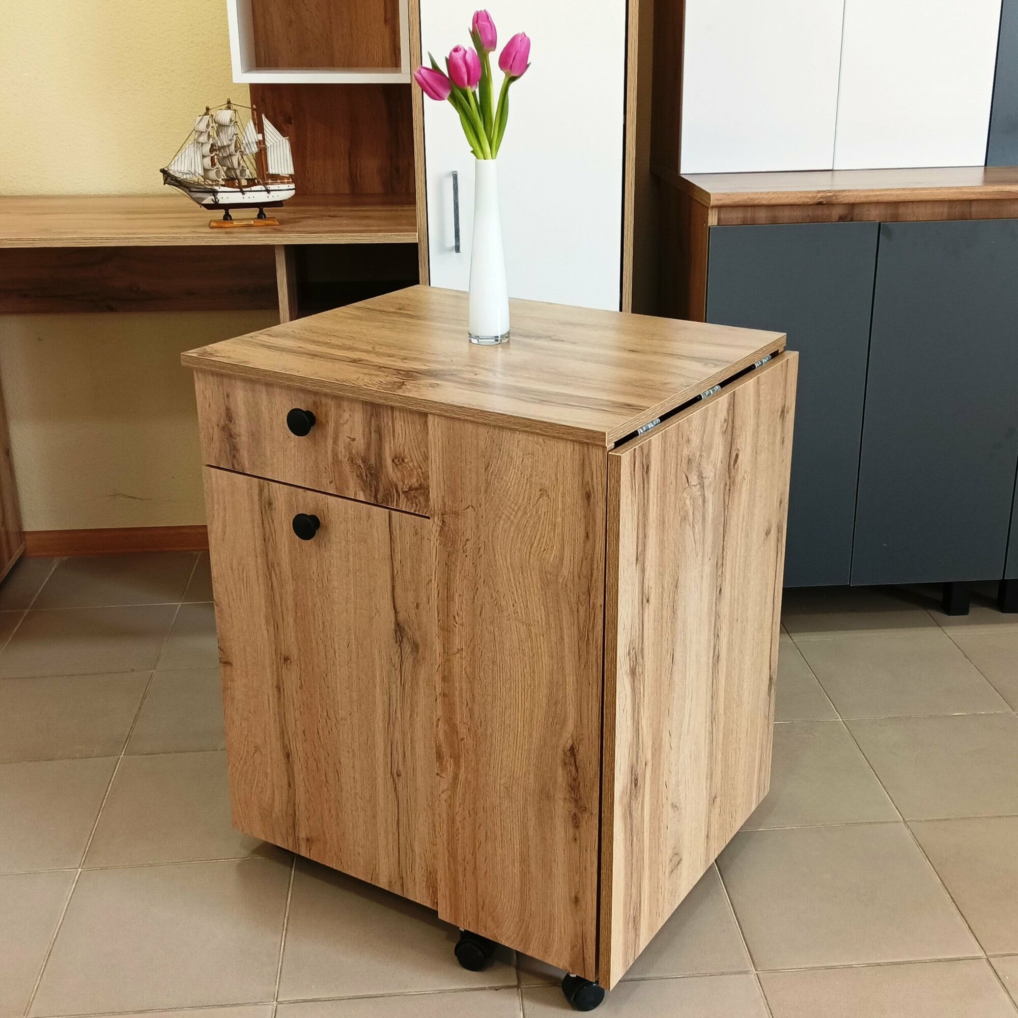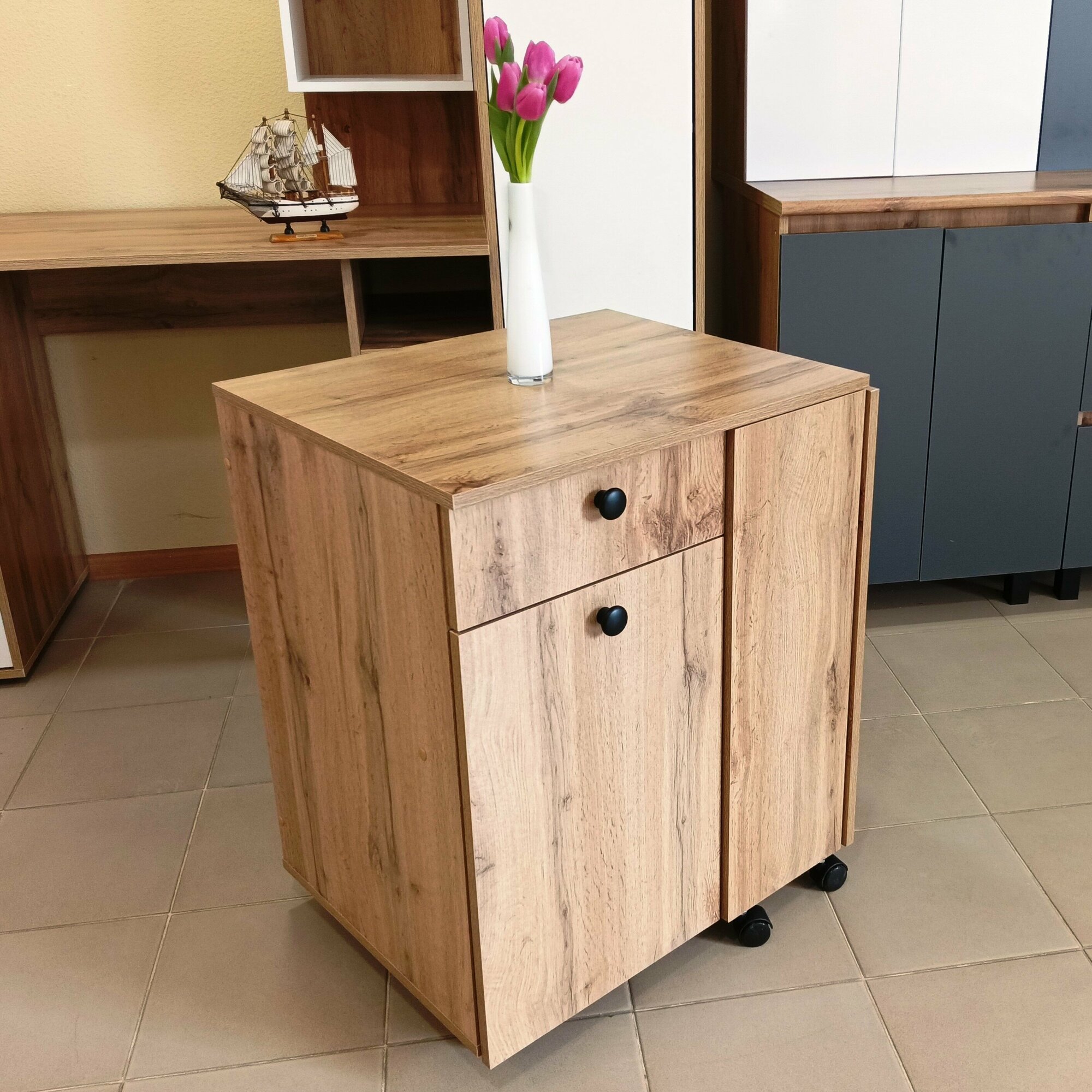 | Особенности | на колесиках, с полкой, с ящиком/тумбой |