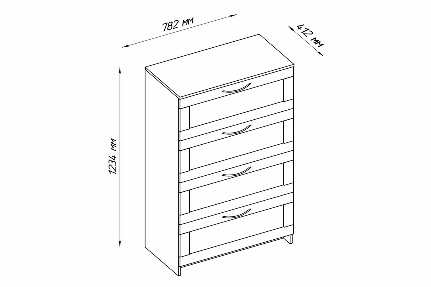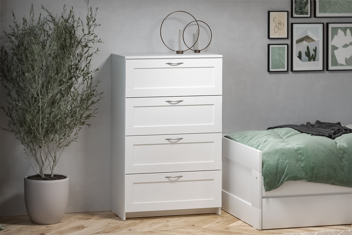 Купить Комод напольный 4 ящика Hoff Сириус, 78х124х41 см, для гостиной, матовый фасад, ДСП, цвет белый
