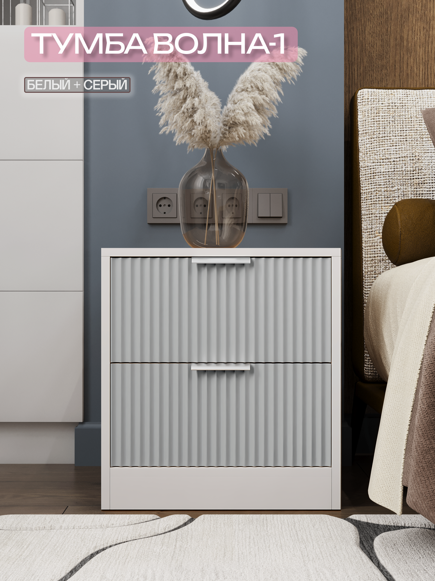 СохранитьПрикроватная тумба KOMODO ВОЛНА-1 белая/серая, напольная, 43.6х40х45.7 интересное: